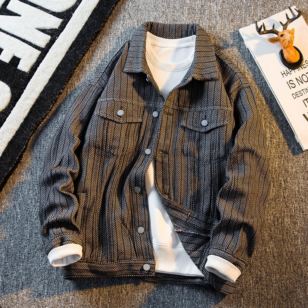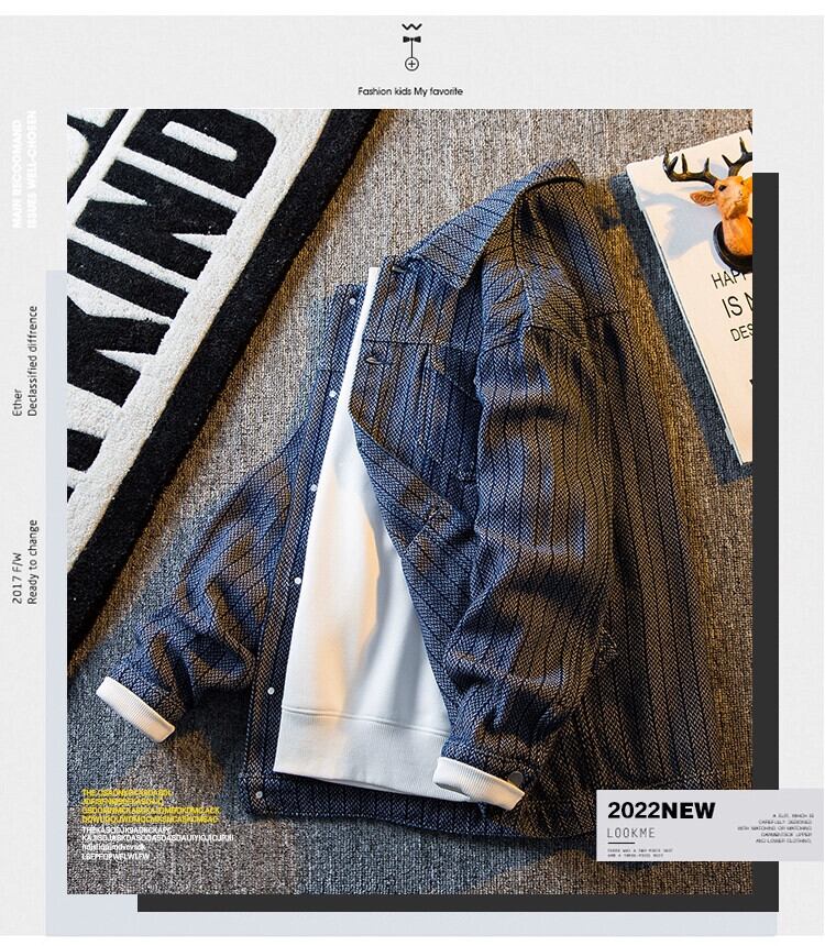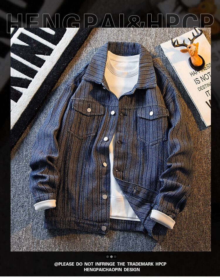 HPCP ese ストライプ デニム ジャケット メンズ 春秋 トレンド ブランド ハンサム トレンド 万能 メンズ カジュアル ジャケット デニムジャケット スプリング 春物 オータム 秋物 338198228654071