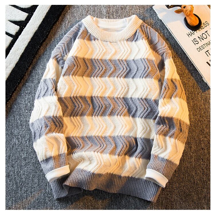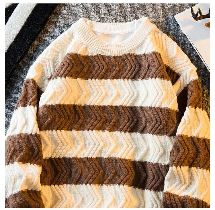 HPCP 秋冬のアメリカンレトロストライプセーターメンズ、ルーズで怠惰でハイエンド、冬の厚いインナーセーターメンズ オータム 秋物 ウィンター 冬物 3381926058453558