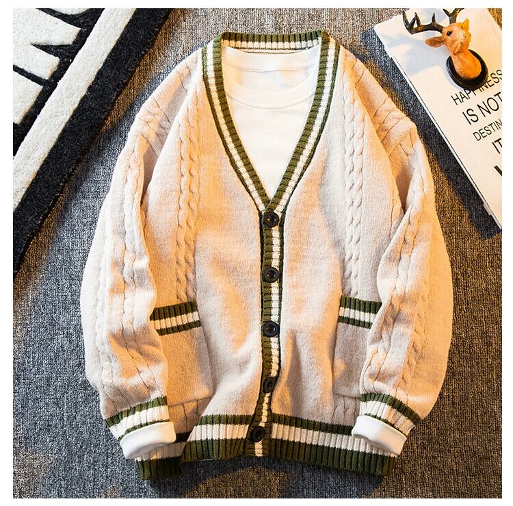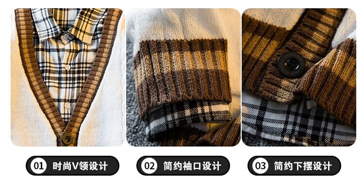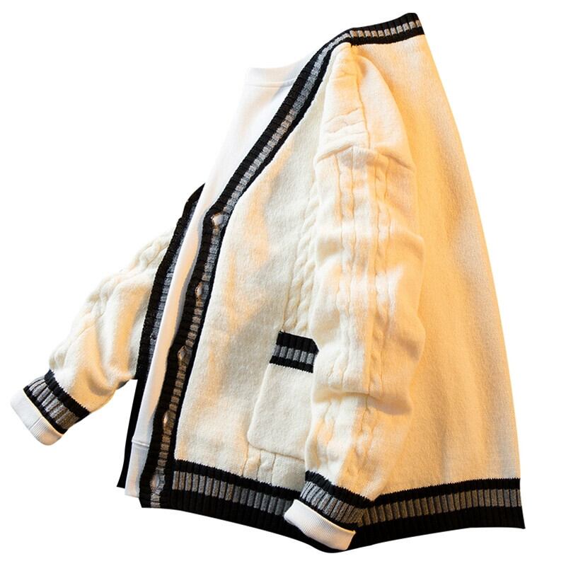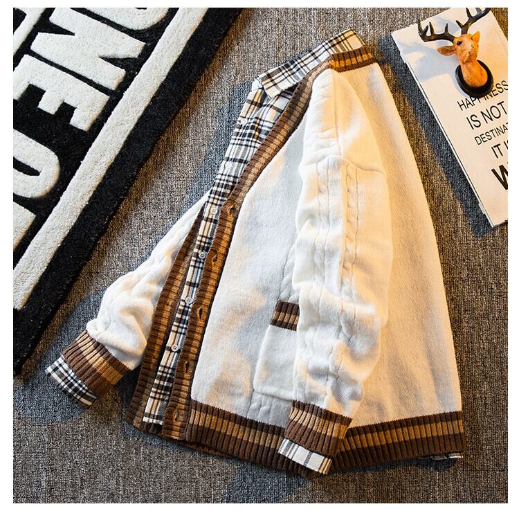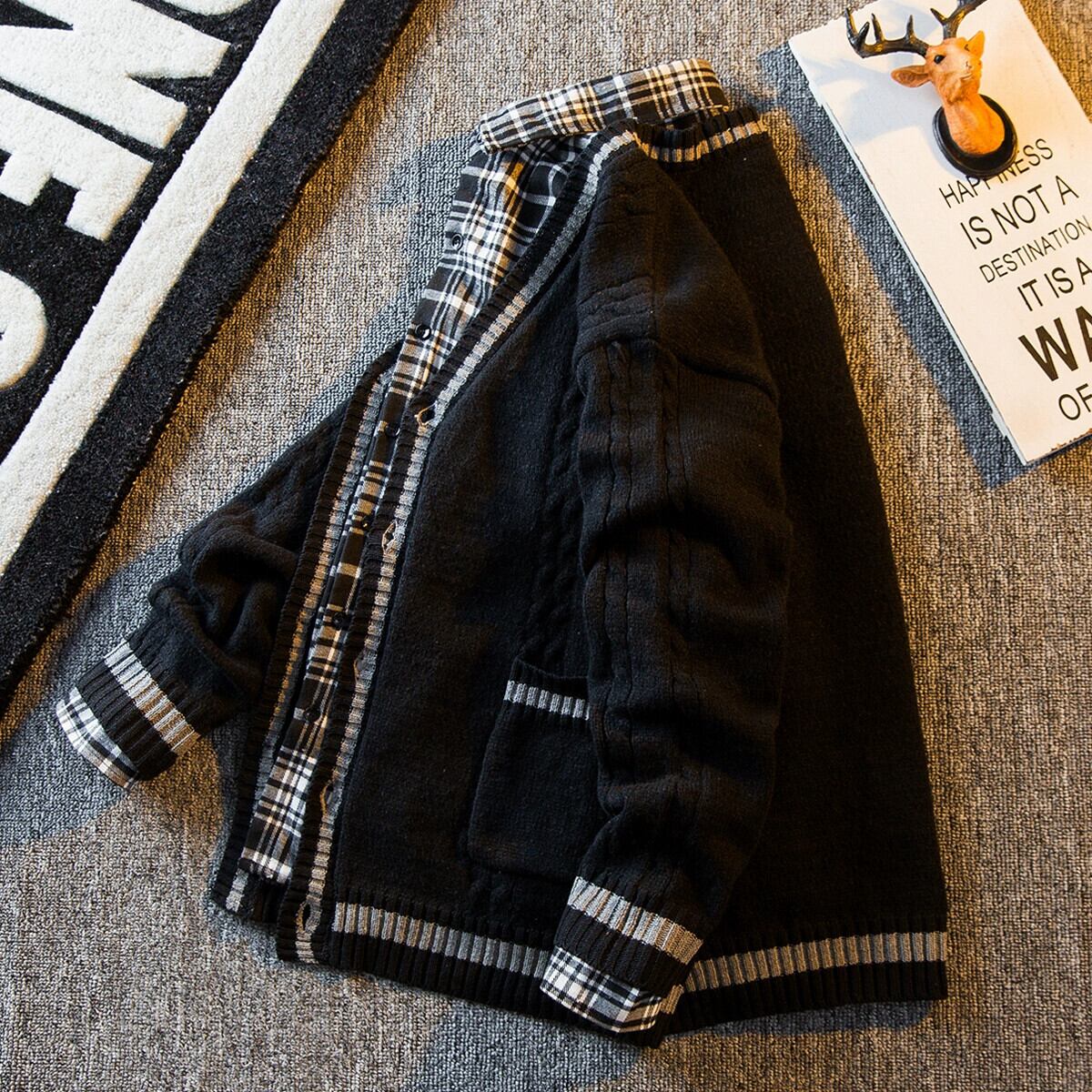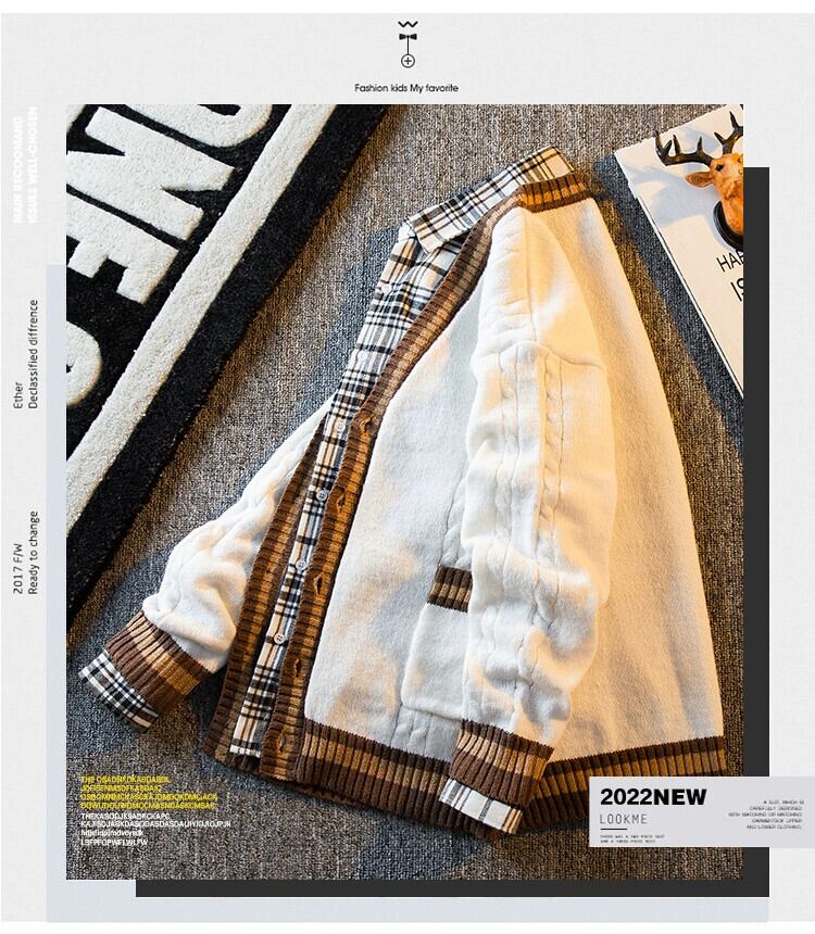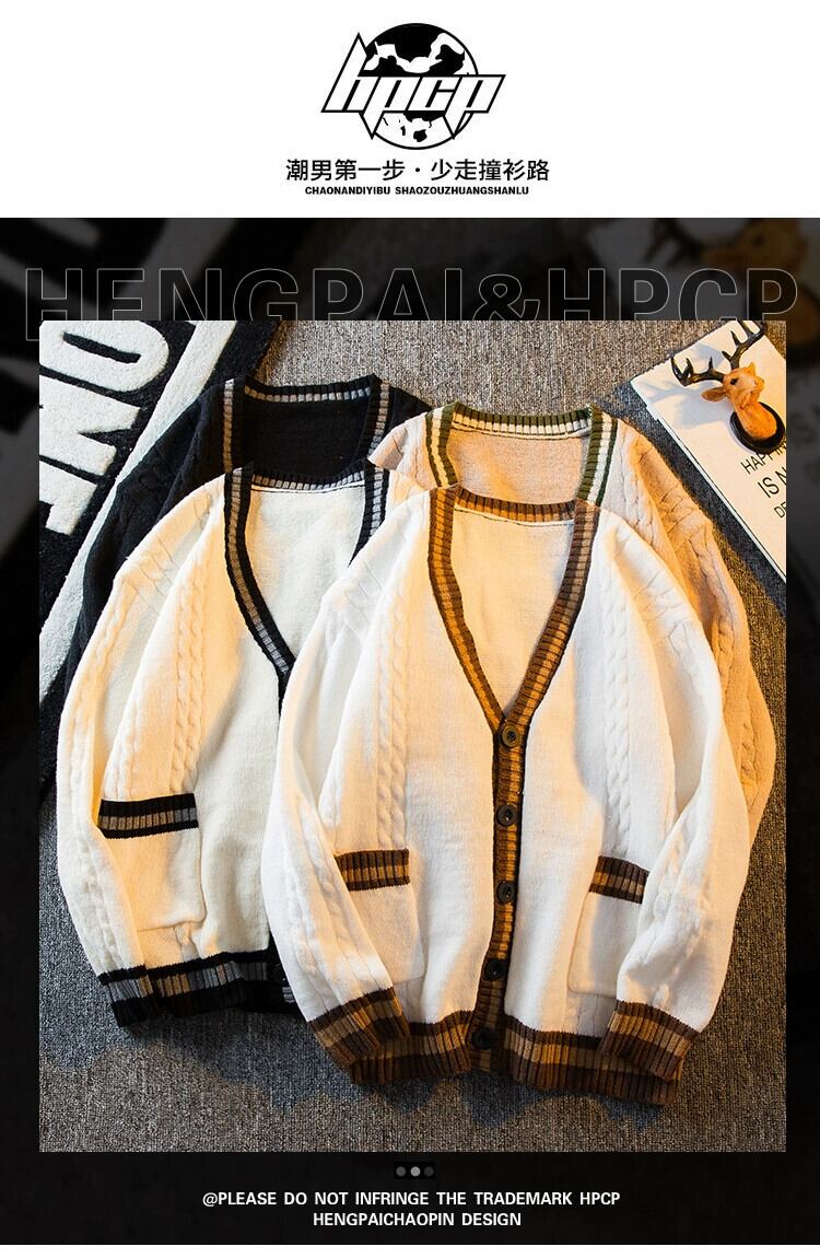HPCP 秋と冬のレトロなスプライシング V ネックカーディガンセータージャケットメンズトレンディなブランド対照的なルーズ BF スタイルのカップルセーター オータム 秋物 ウィンター 冬物 Vネック 3381939760258884