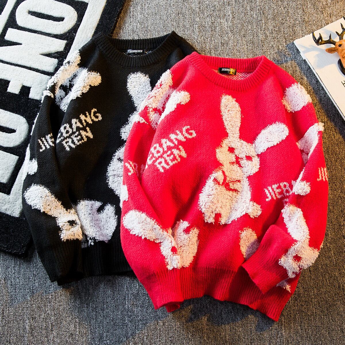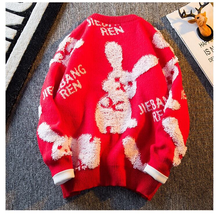 HPCP ウサギ動物年セーター秋と冬のカップルは緩い怠惰なスタイルのニッチ赤年プルオーバー セーターを着用します。 レッド オータム 秋物 ウィンター 冬物 338194771845309