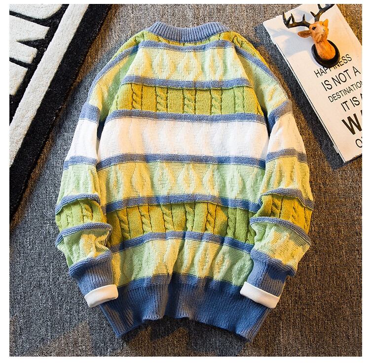 HPCP アメリカのレトロなストライプのクルーネックセーターメンズ冬肥厚怠惰なスタイルルーズハイエンドニットセーター男性 ウィンター 冬物 3381917551648769