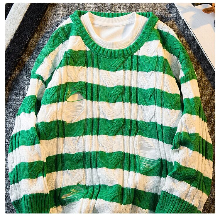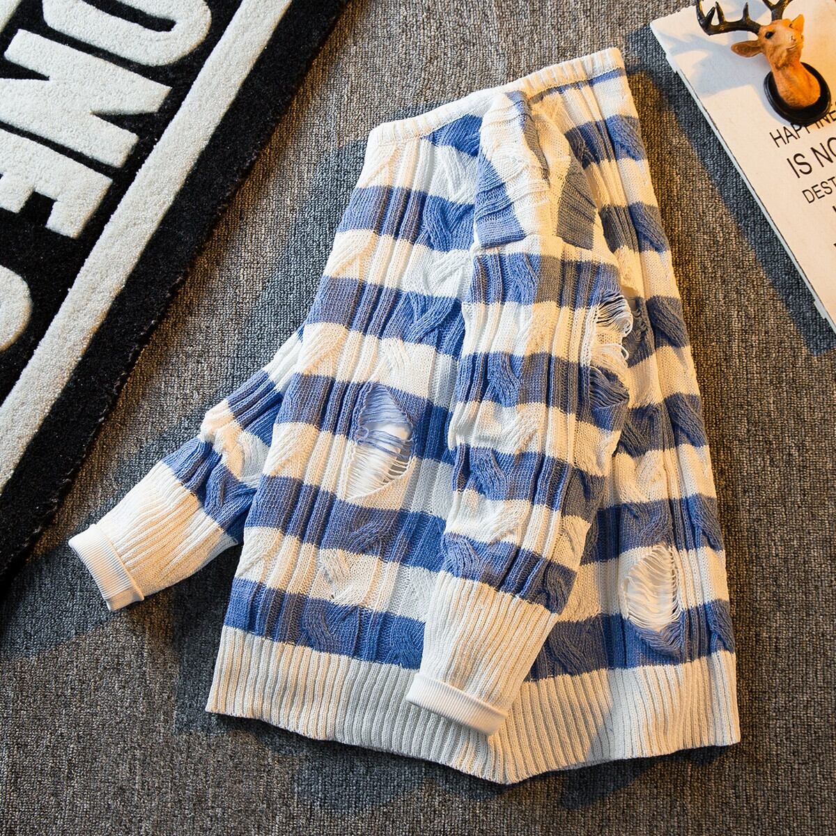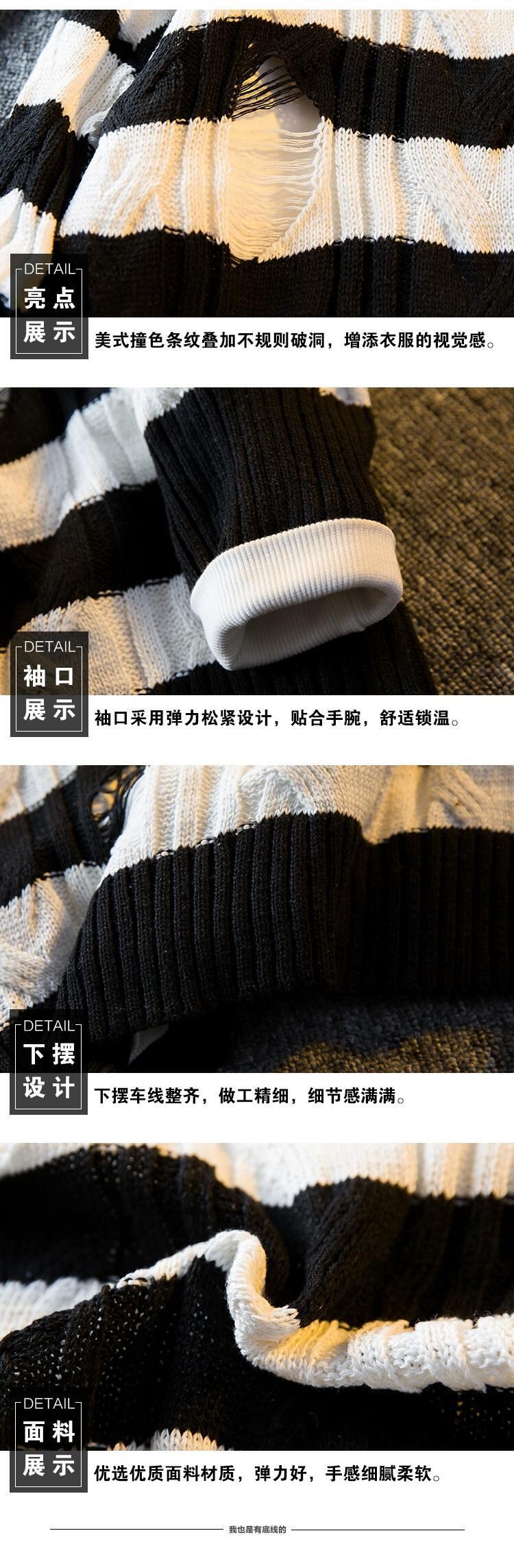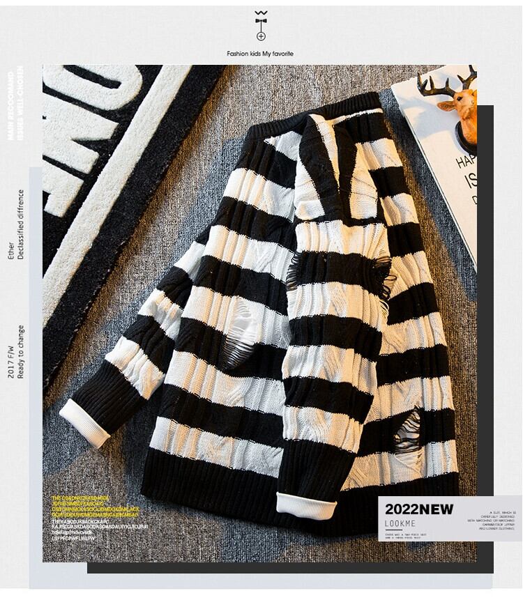 HPCP ストライプセーターメンズ秋冬穴デザインニッチトレンディブランド怠惰なハイエンドルーズカジュアルセーター オータム 秋物 ウィンター 冬物 3381967123645264