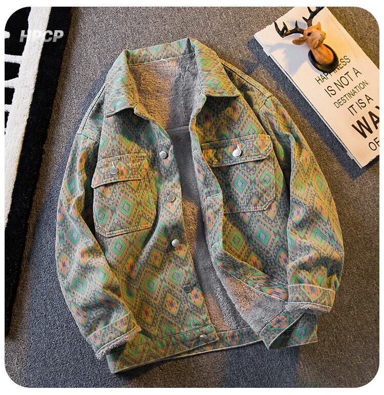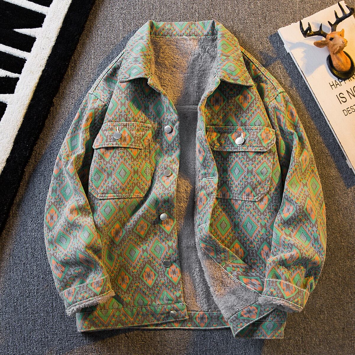 Hengpai 流行の冬服暖かい肥厚ベルベットデニムジャケットメンズ秋と冬のヘビーウェイト厚いラペルジャケット男性 オータム 秋物 ウィンター 冬物 3381924969501310