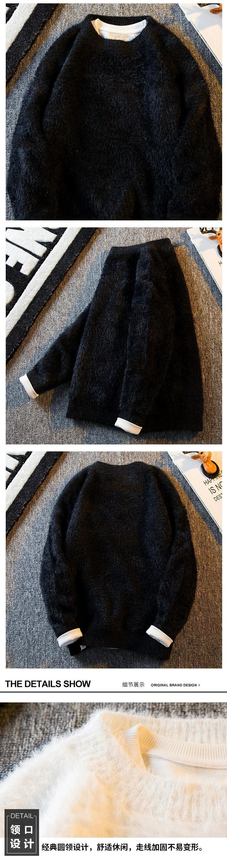 HPCP ソフトワックス状ミンクベルベットラウンドネックセーター男性の秋と冬 ese スタイル怠惰な男性の無地インナーセーターセーター オータム 秋物 ウィンター 冬物 Oネック ソリッドカラー 3381915846908859