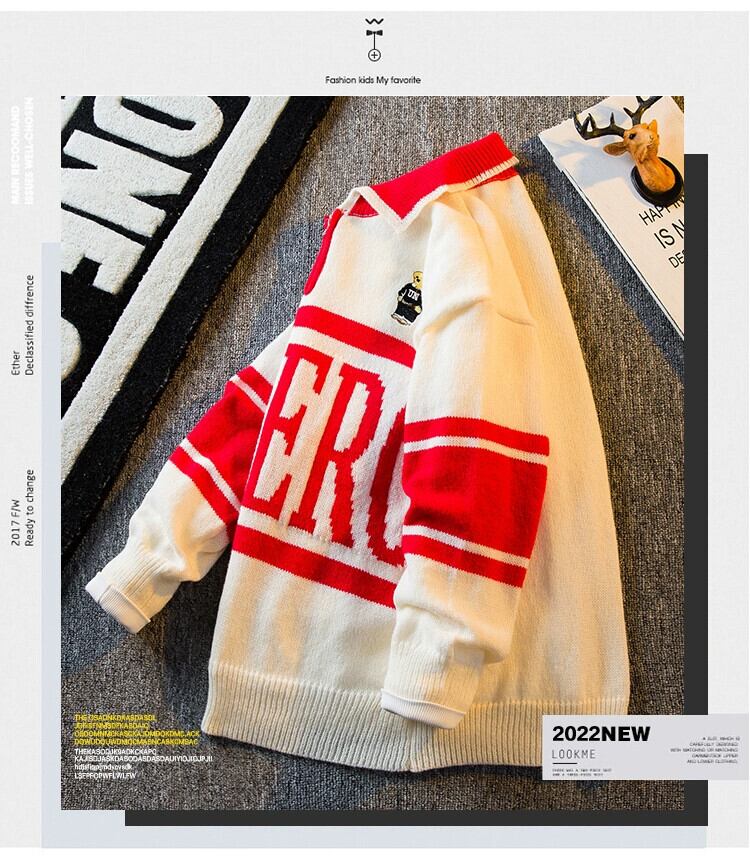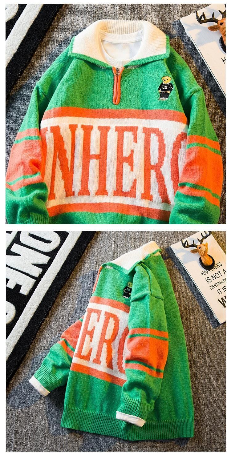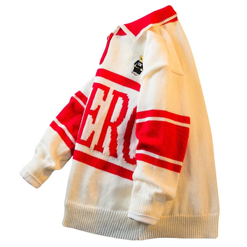 HPCP アメリカンレトロヴィンテージ刺繍クマセーターメンズ冬トレンディカップルラペルポロセーター レッド ウィンター 冬物 ビンテージ 3381976644825713