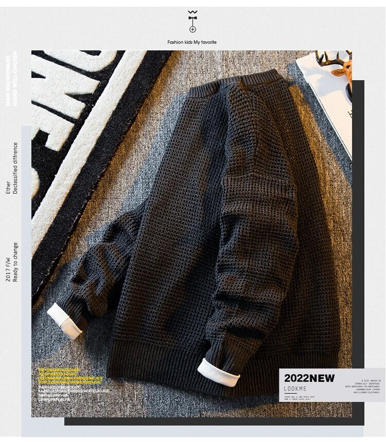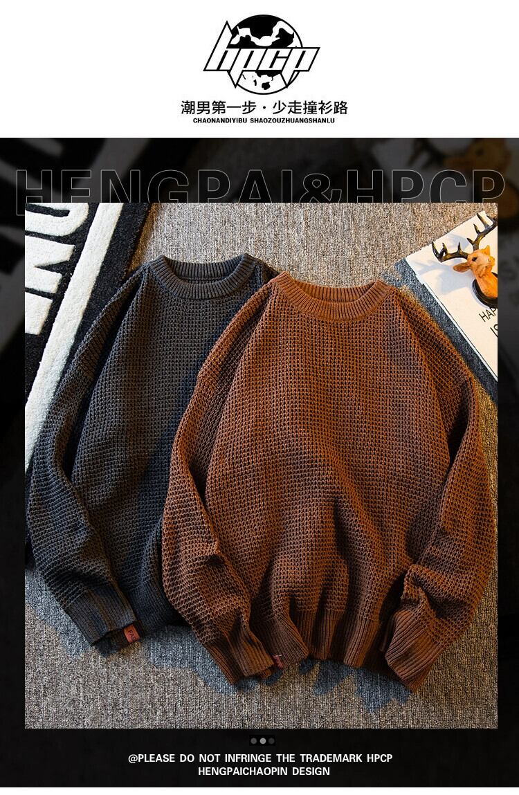 HPCP ese レトロパイナップルパターンラウンドネックセーターメンズ冬肥厚トレンディブランドハンサムハイエンドインナーニットセーター ウィンター 冬物 Oネック 3381938502201762