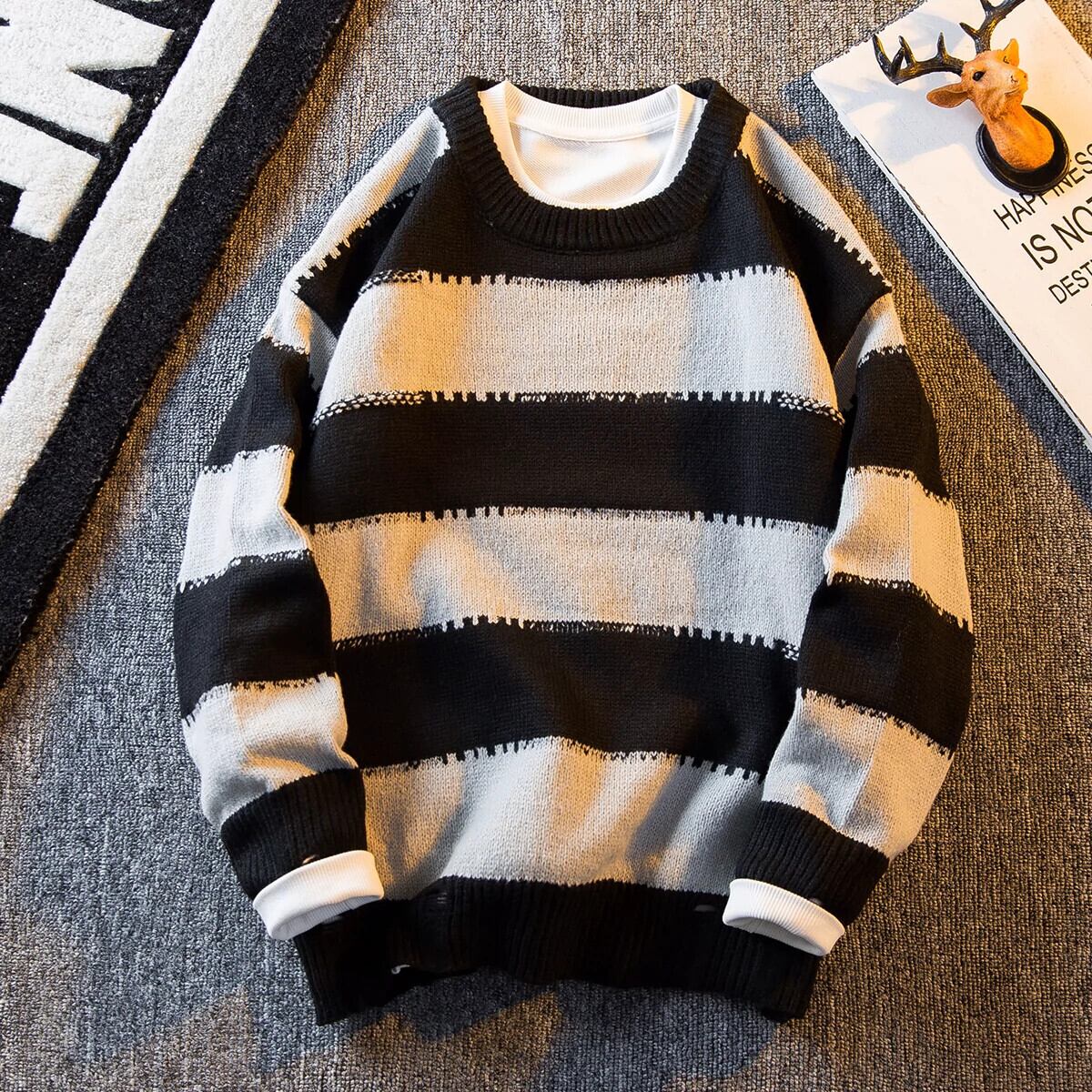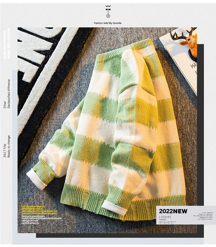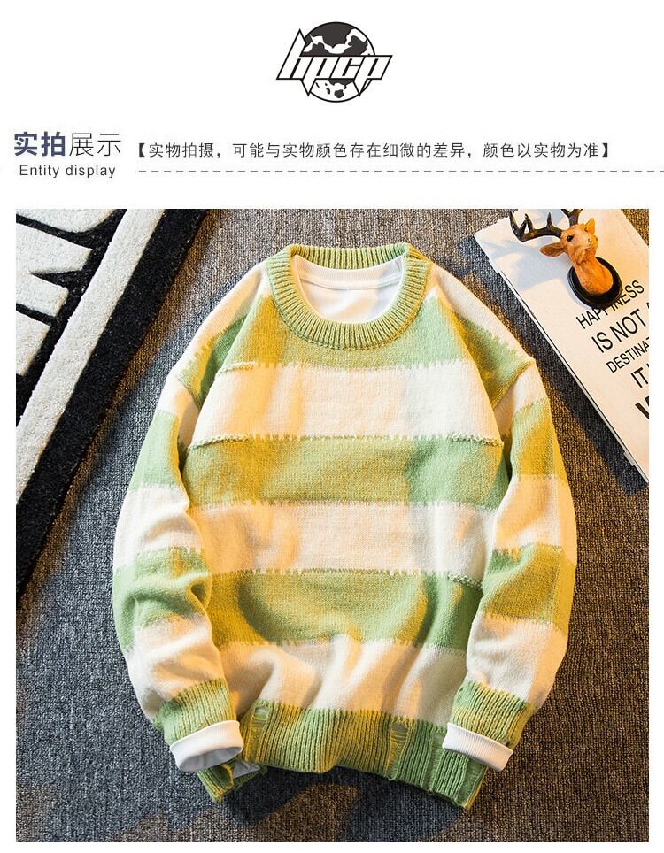 HPCP ストライプセーターメンズ冬怠惰なスタイルセーター秋と冬肥厚トレンディブランドハイエンドレトロハンサムセーター オータム 秋物 ウィンター 冬物 338191021844318