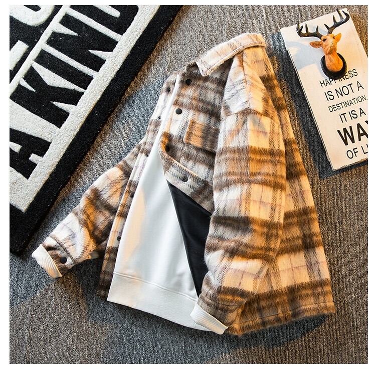 HPCP 小さな香りのスタイル起毛チェック柄ジャケットメンズ春と秋のルーズイントレンディなブランドのカップルはカジュアルなジャケットの服を着る スプリング 春物 オータム 秋物 3381929263711709