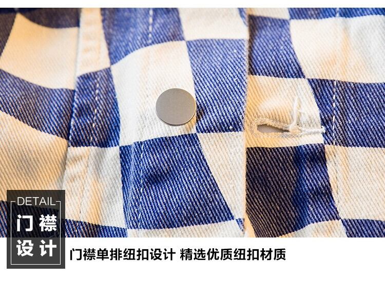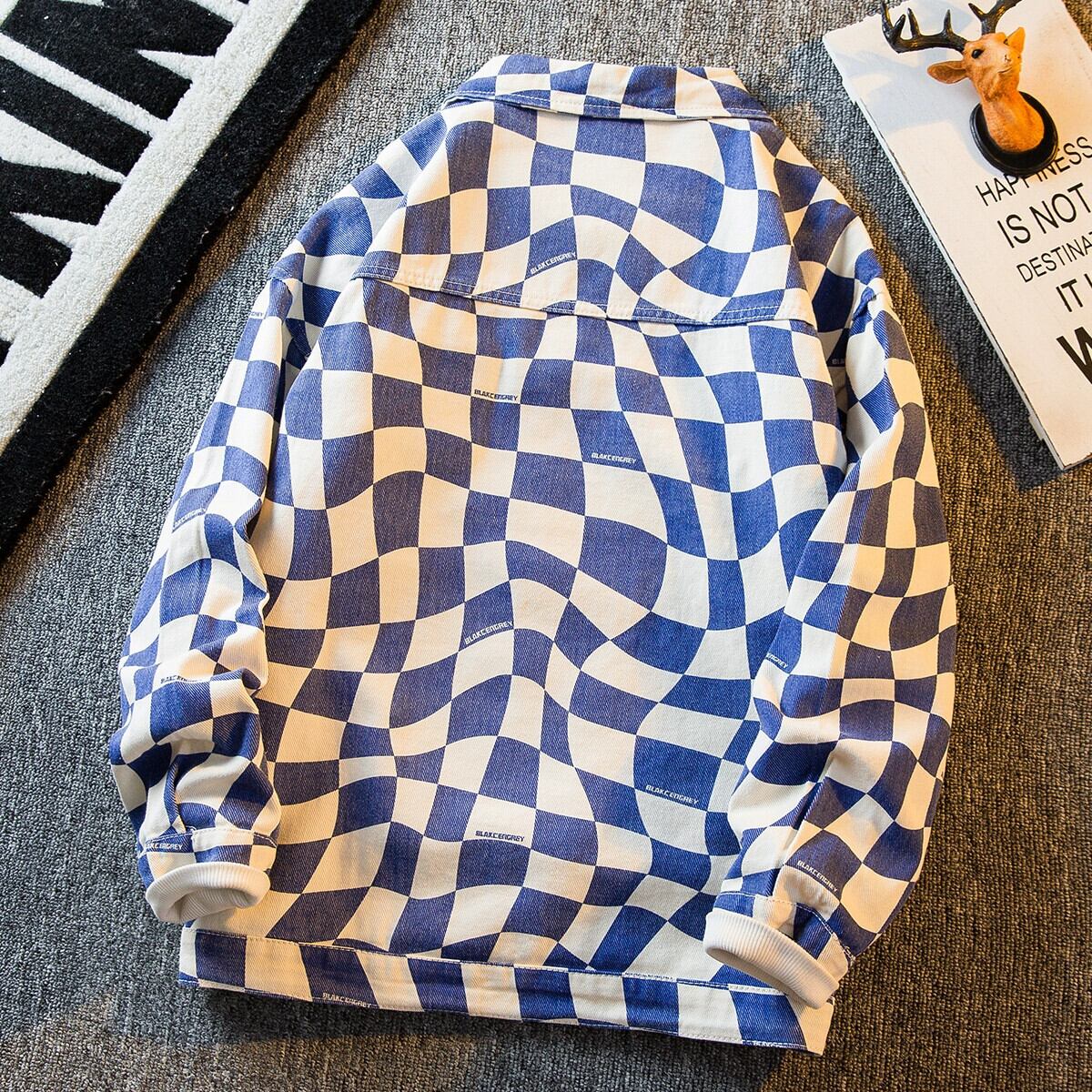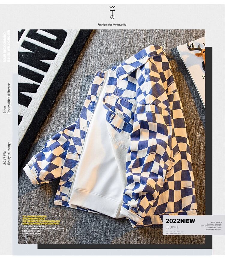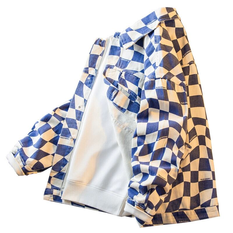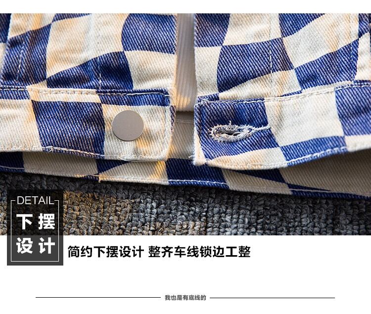 HPCP レトロ不規則な市松模様のデニムジャケット男性春と秋のハンサムなトレンディなハイストリートカジュアルチェック柄ジャケット男性 スプリング 春物 オータム 秋物 3381975014329001