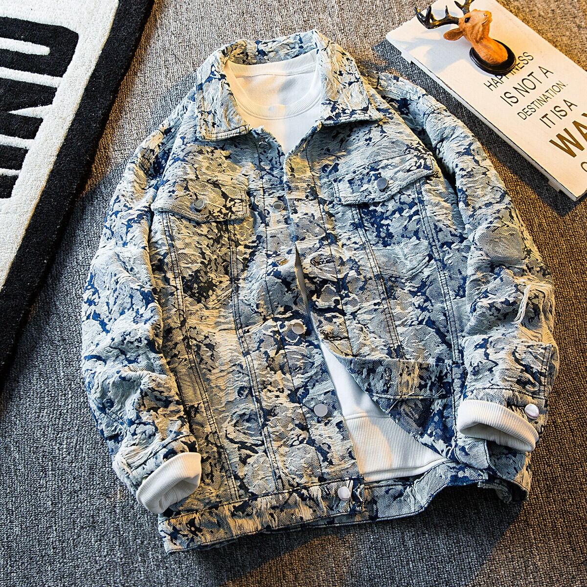 HPCP レトロな古い花刺繍デニムジャケットメンズ春と秋のトレンディなブランドルーズハイストリートハンサムカジュアルトレンディなジャケット レッド スプリング 春物 オータム 秋物 フラワーデザイン 3381978990095301