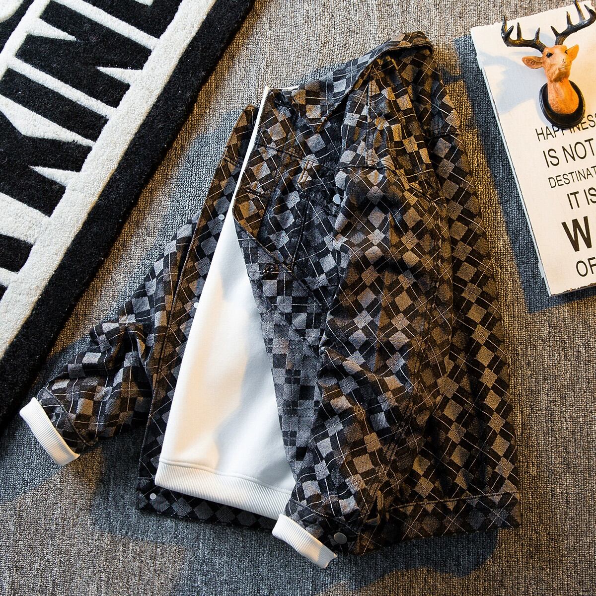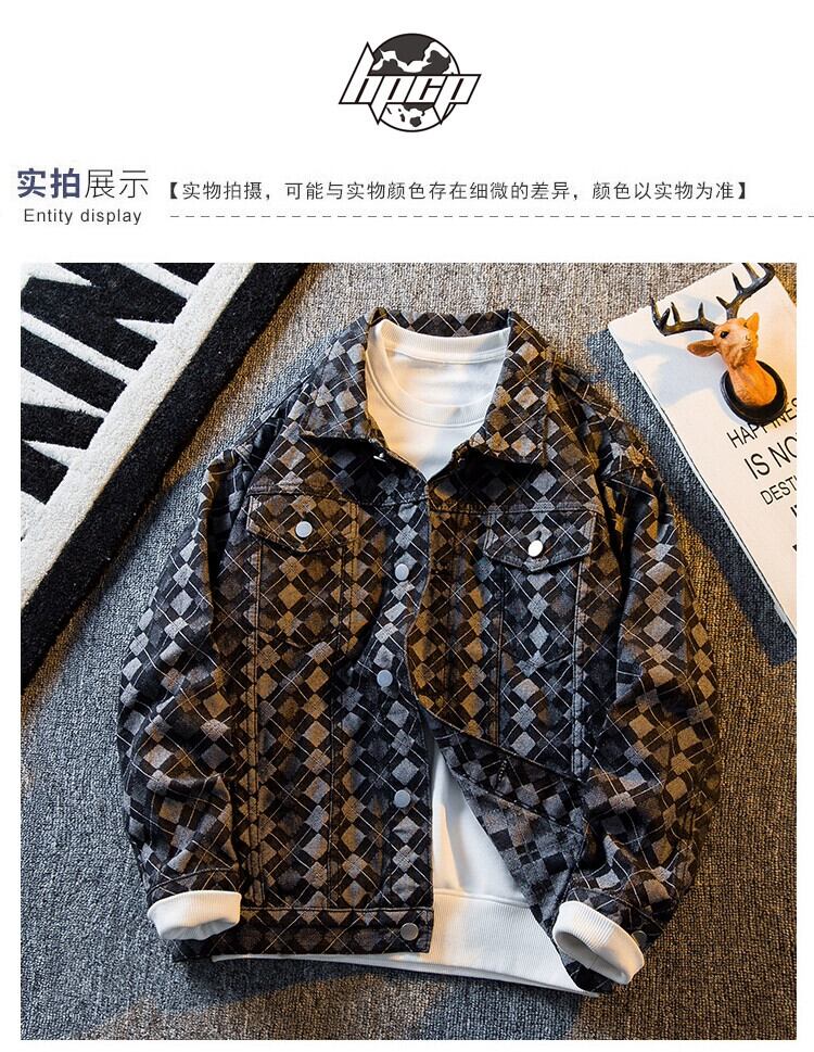 HPCP 重工業菱形ジャカードデニムジャケットメンズ春秋トレンディブランドハイエンドハンサムメンズレトロカジュアルジャケット スプリング 春物 オータム 秋物 3381933488313093