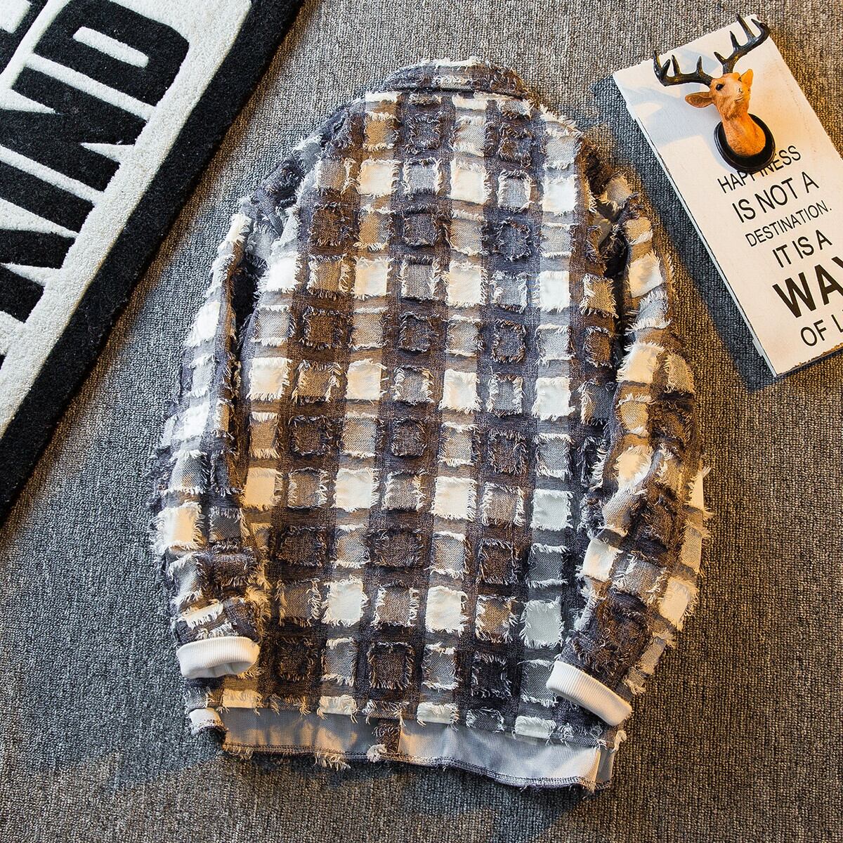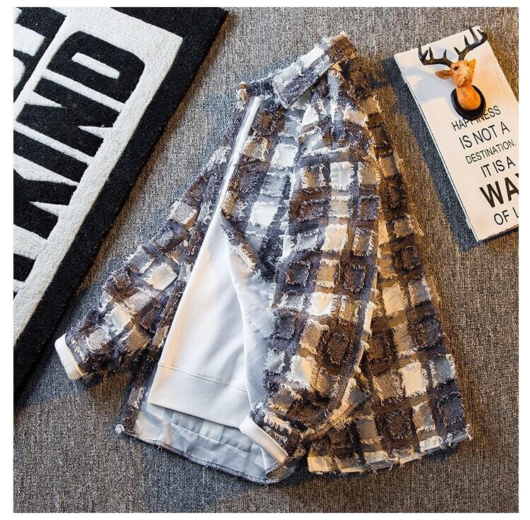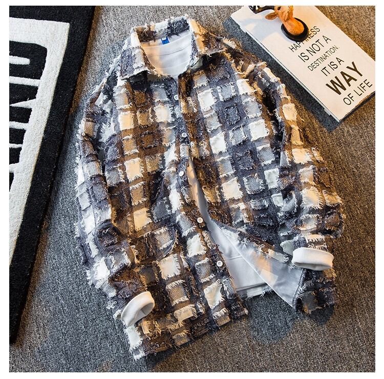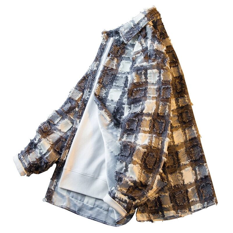 HPCP フリンジ起毛チェック柄シャツメンズ長袖ファッションブランド春ルーズストリートハイエンドカジュアルシャツジャケット ロング スプリング 春物 3381927970834543