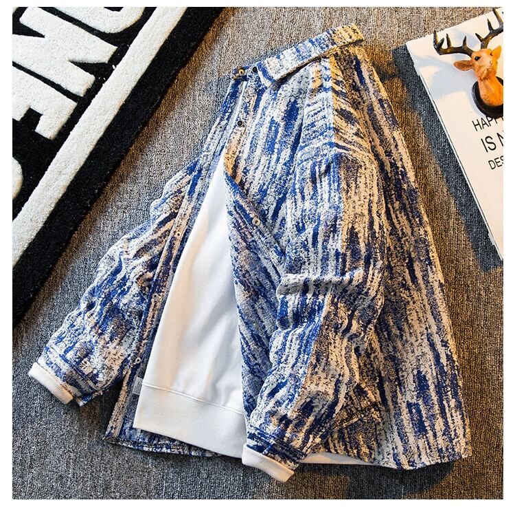 HPCP タイダイプリントレトロ長袖シャツメンズ春秋、ハイエンドストリートファッションカジュアルシャツとジャケットメンズ ロング スプリング 春物 オータム 秋物 3381964994086829