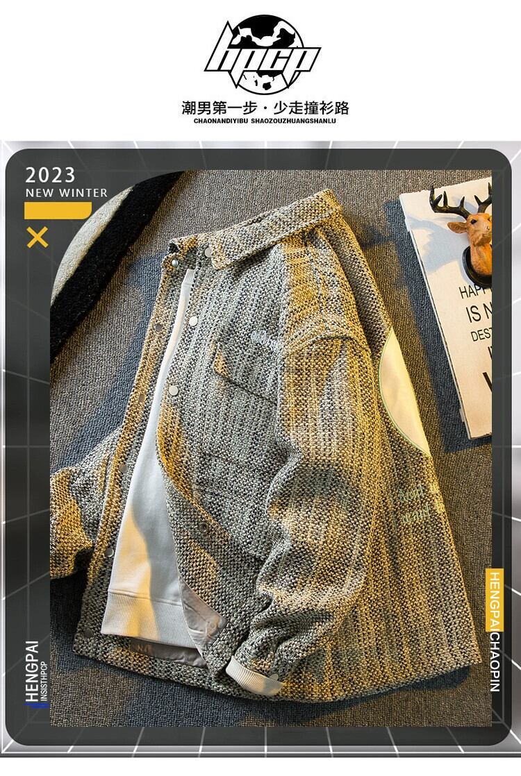 Hengpai トレンディなレトロな織ウールの小さな香りのよいジャケットメンズ春のカップルスタイルのハイエンドのハンサムなラペルジャケット スプリング 春物 3381913820947387