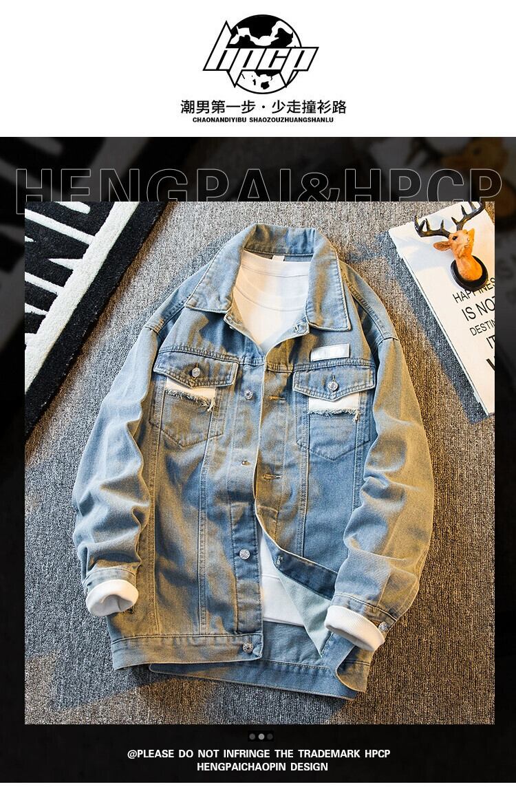 HPCP アメリカンハイストリートスプライシングデニムジャケットメンズ春秋レトロハンサムトレンディブランドカップルカジュアルオールマッチジャケット スプリング 春物 オータム 秋物 3381991835689380