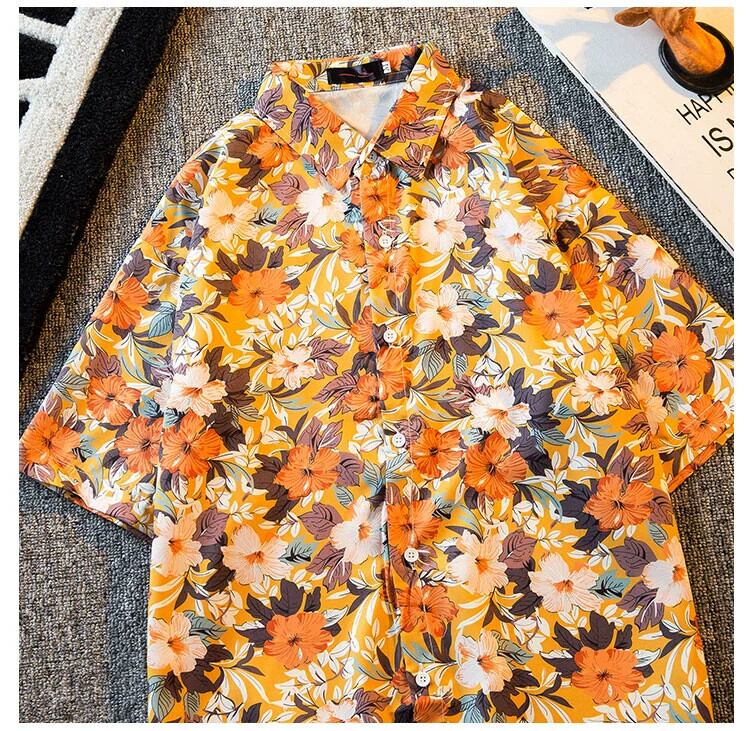 HPCP レトロ香港スタイルアロハシャツ半袖メンズハイエンドトレンディブランドハンサム夏花柄ビーチフラワーシャツ サマー 夏物 フラワーデザイン 3381943429172453
