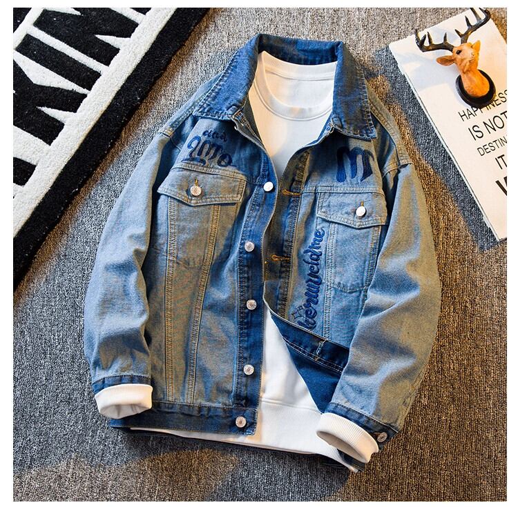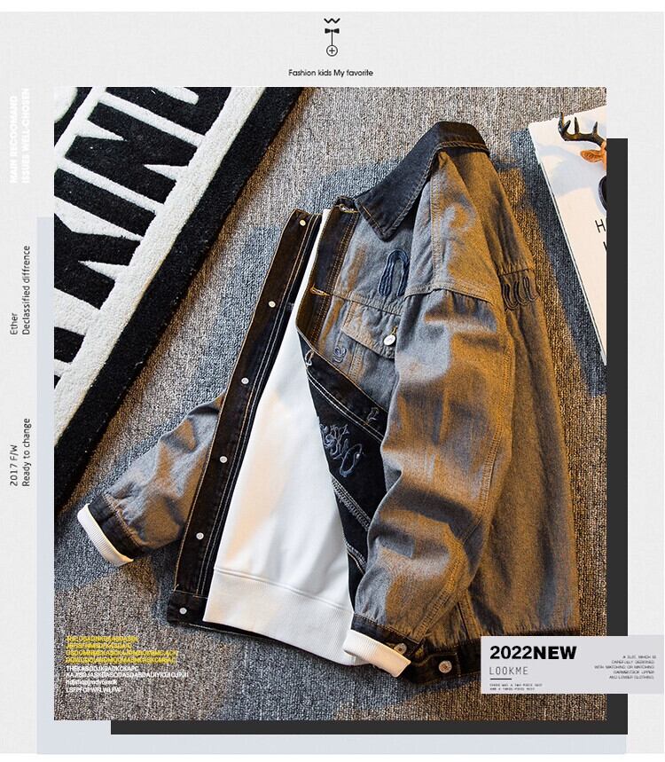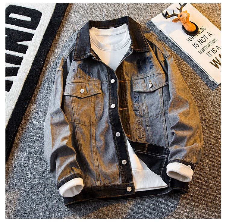HPCP アメリカンレトロスプライスデニムジャケットメンズ春と秋のトレンディなハイストリート刺繍ハンサムカジュアルワークウェアジャケット男性 レッド スプリング 春物 オータム 秋物 3381938088620647