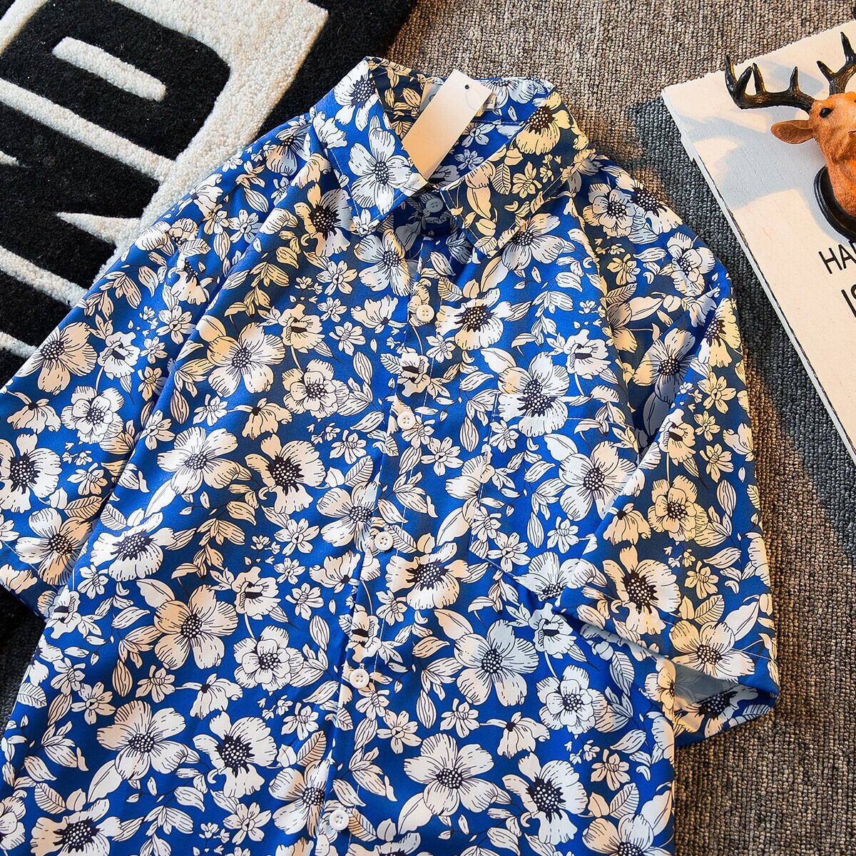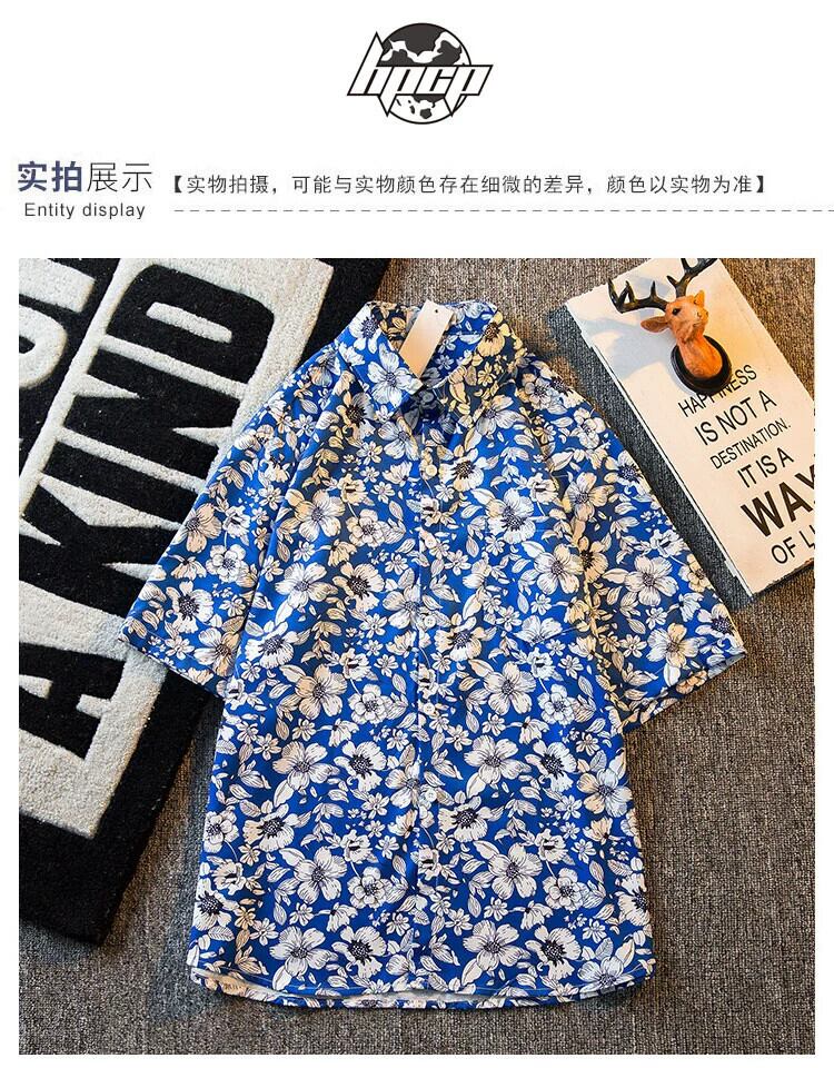 HPCP レトロヴィンテージ花柄半袖シャツメンズサマービーチ半袖ヴィンテージハワイアンフラワーシャツトレンディ 夏物 フラワーデザイン ビンテージ 3381999119056483