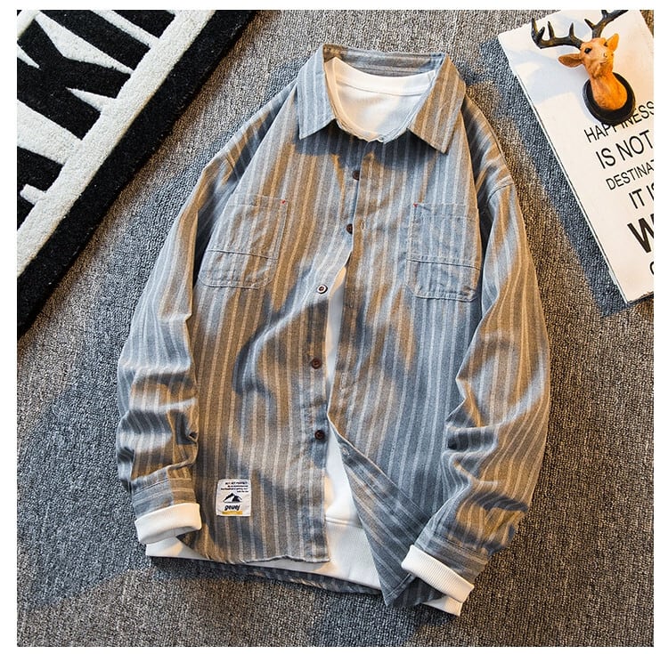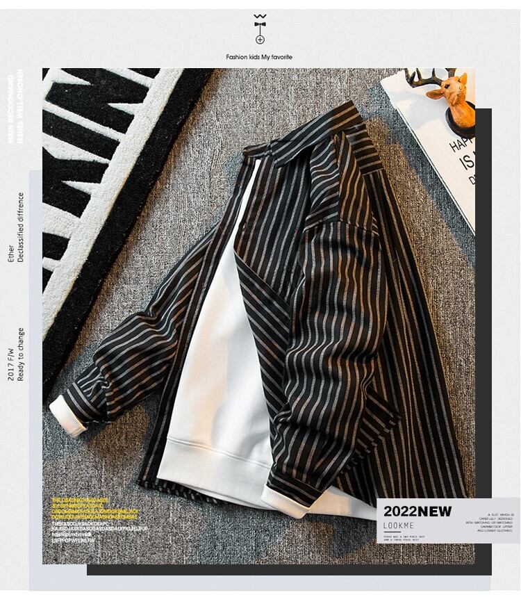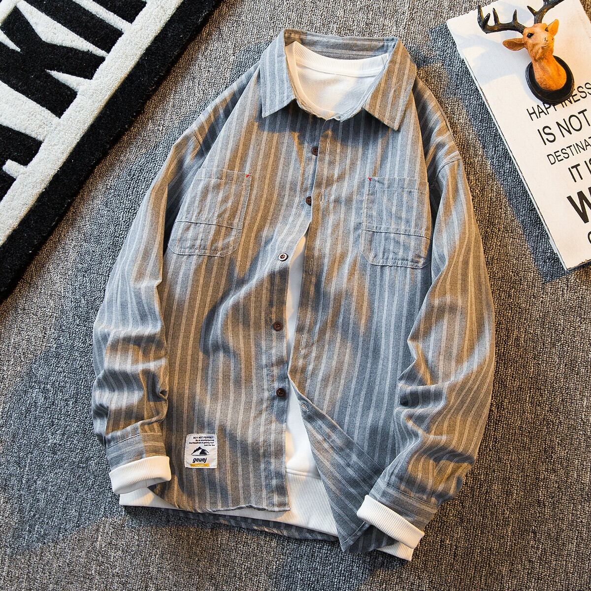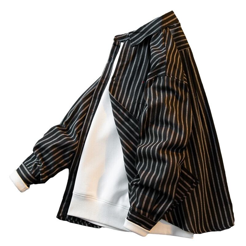 HPCP レトロ縦縞シャツメンズ長袖春秋スタイルハイエンドハンサムメンズカジュアルシャツ薄手ジャケット ロング スプリング 春物 オータム 秋物 ストライプ 3381939107545239