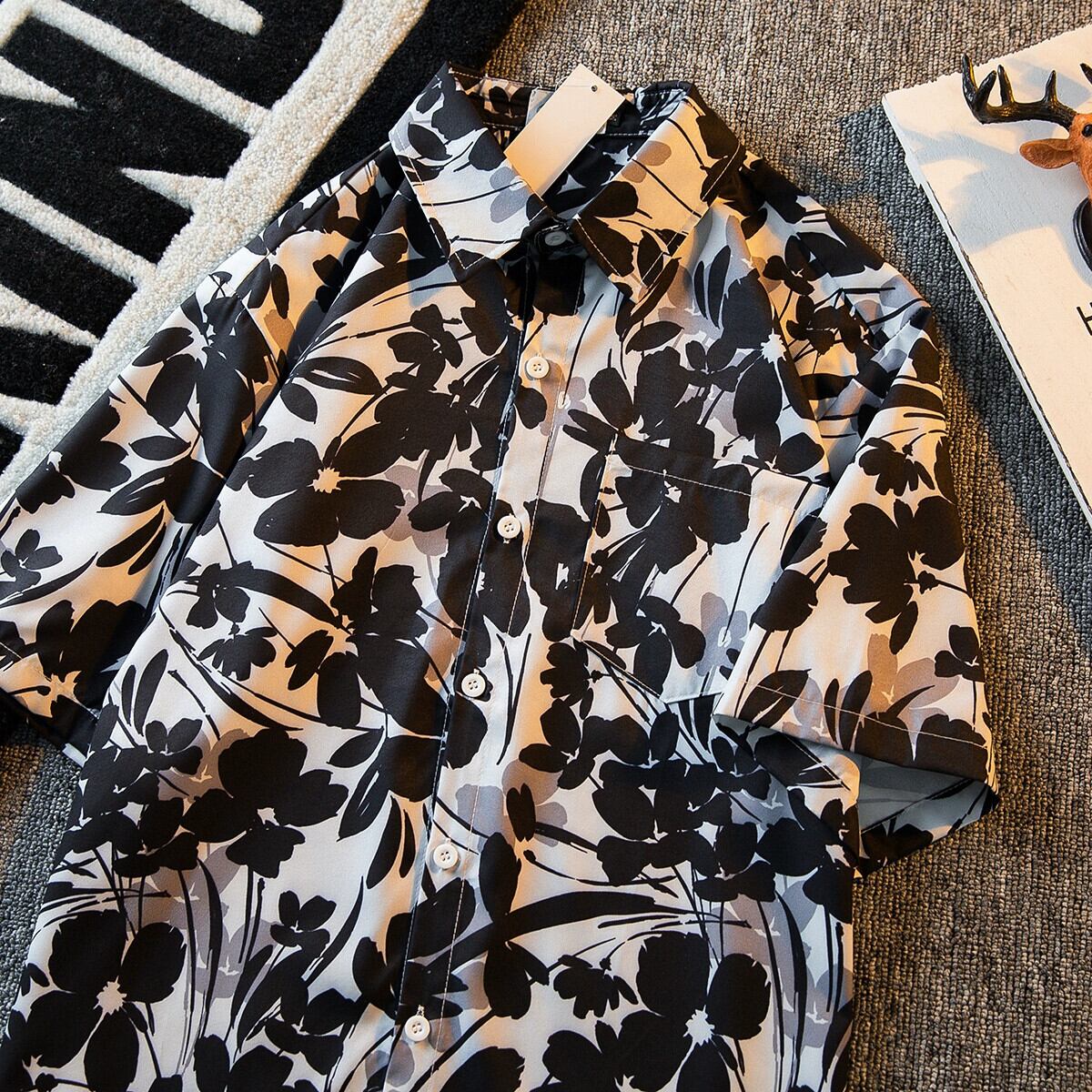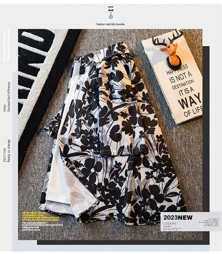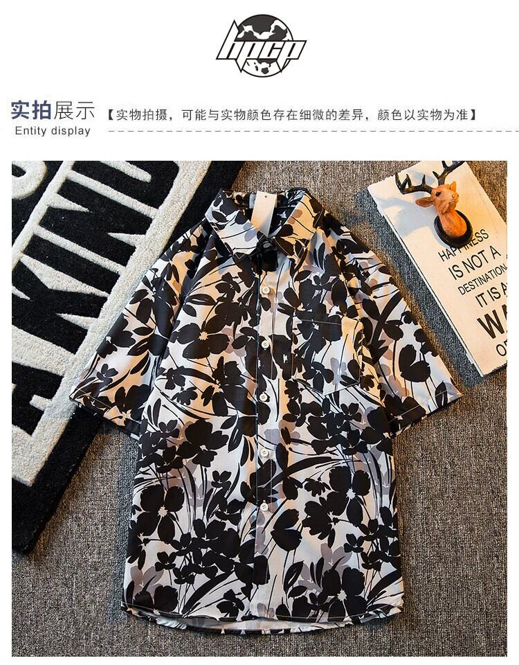 HPCP タイダイインク花柄半袖シャツメンズ夏のレトロトレンドデザインニッチヴィンテージ花柄シャツトレンド サマー 夏物 ビンテージ 3381982266827479
