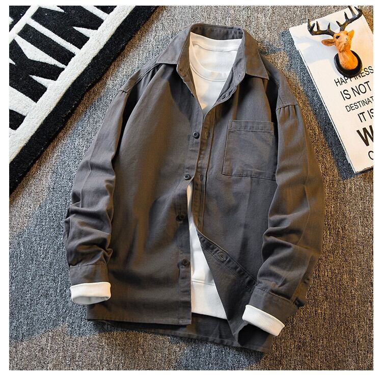 HPCP グレーワークシャツメンズ春と秋薄いエセスタイルレトロハイエンドファッションブランド長袖シャツカジュアルジャケット ロング スプリング 春物 オータム 秋物 3381967996303912