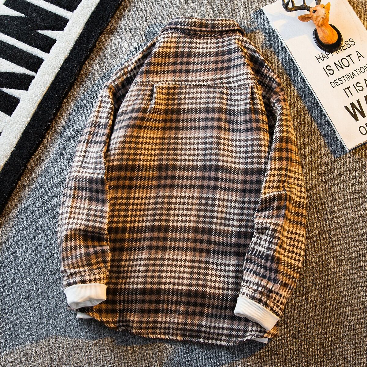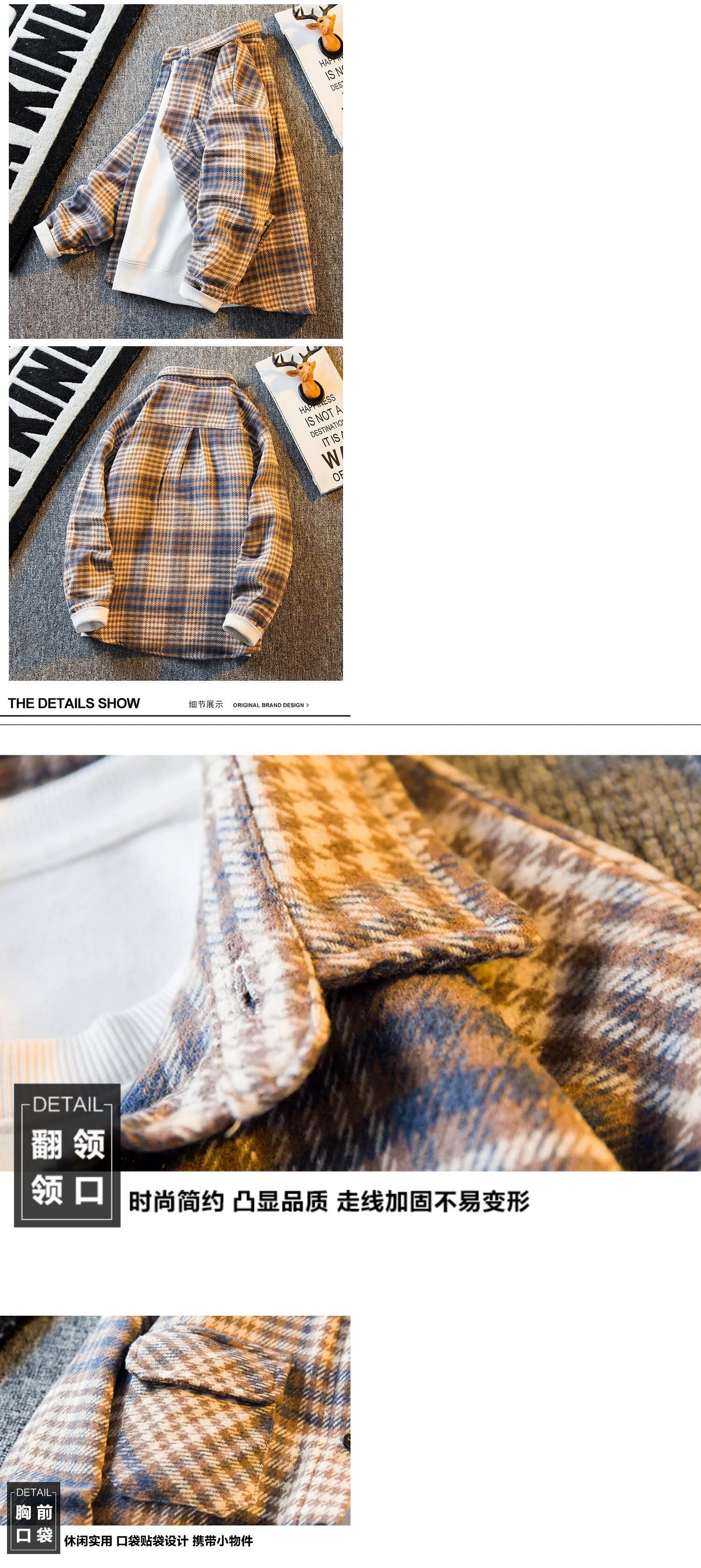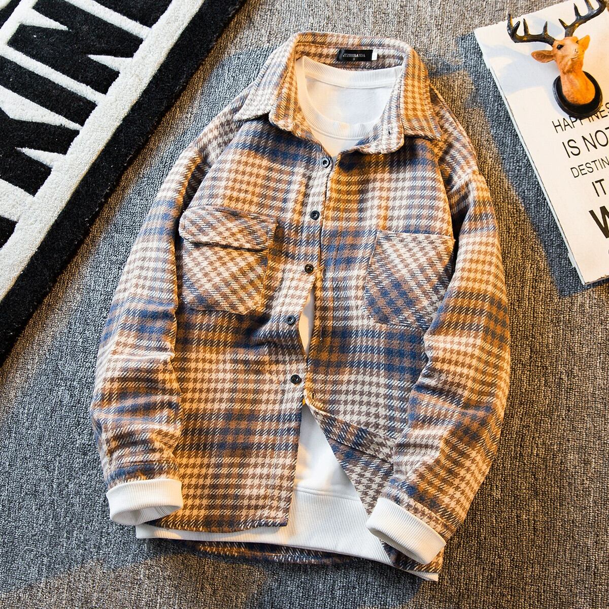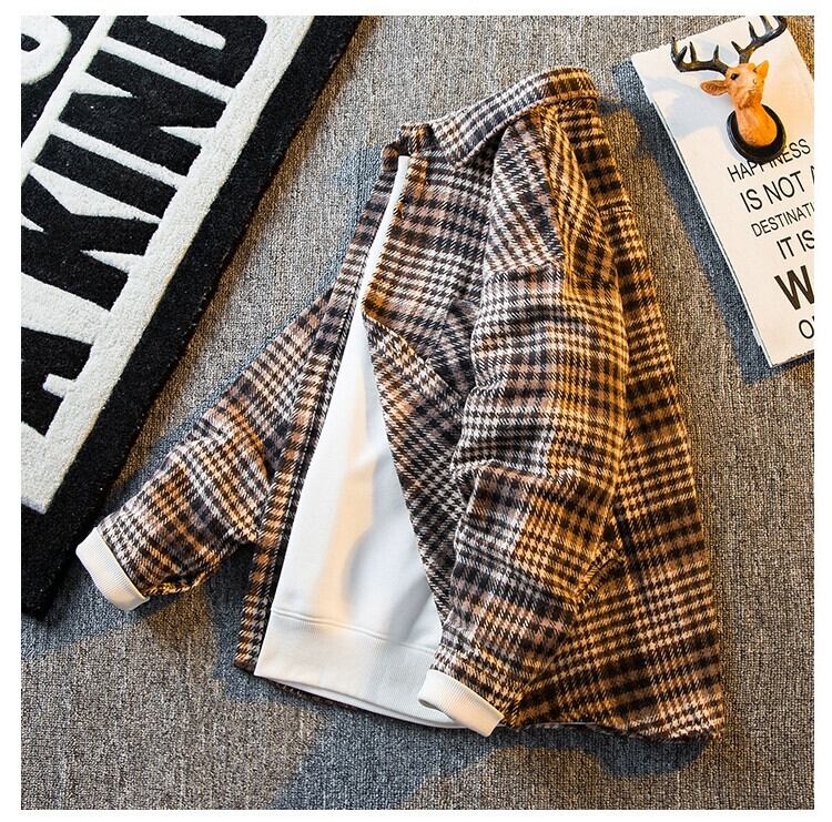HPCP ese レトロ起毛チェック柄ジャケットメンズ春香港スタイルイントレンディカジュアルチェック柄トレンディジャケット男性 スプリング 春物 3381980859574315