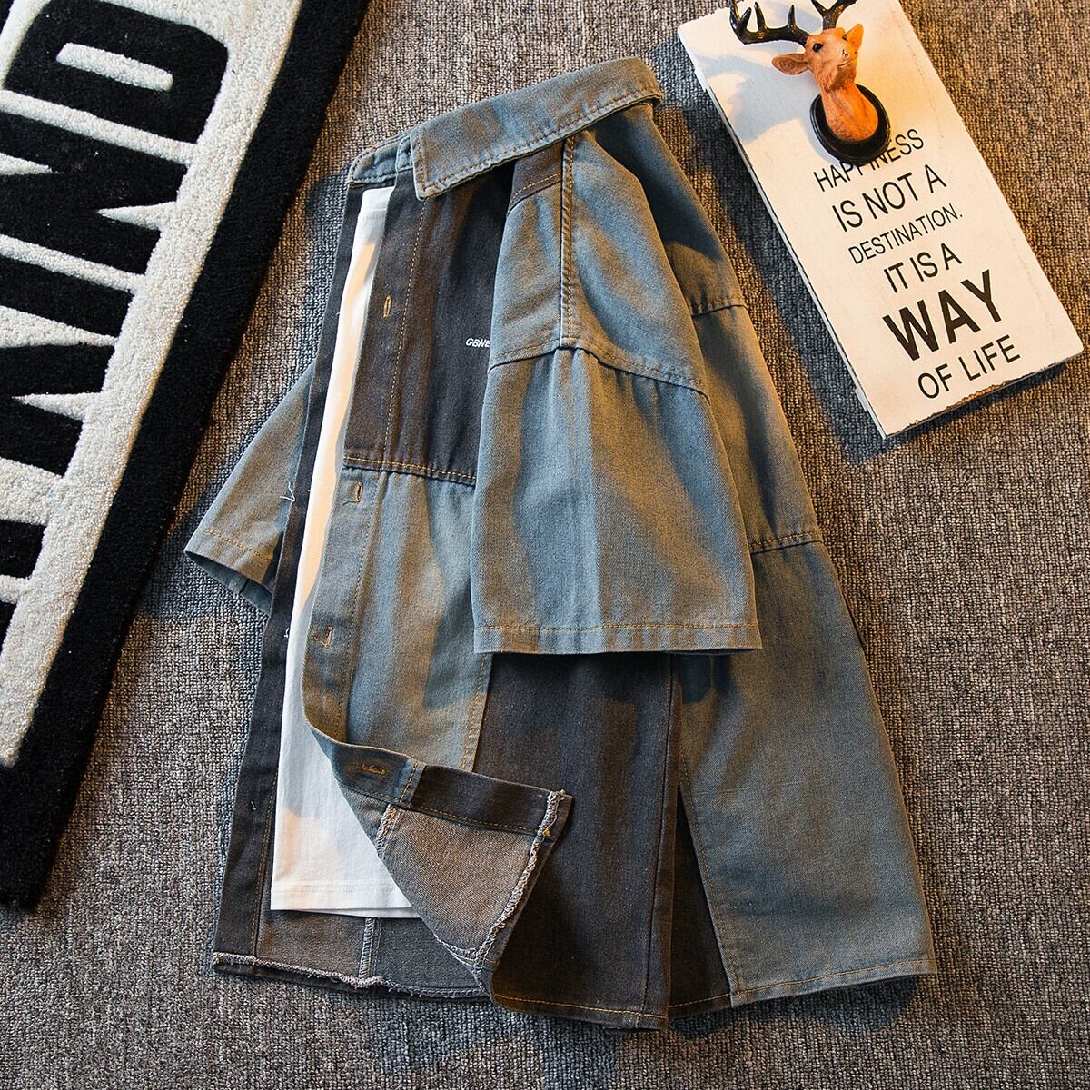 HPCP デニム半袖シャツメンズ夏デザインニッチスプライシング ese レトロハイエンドシャツジャケット男性 サマー 夏物 3381961082873099