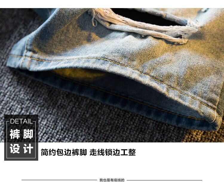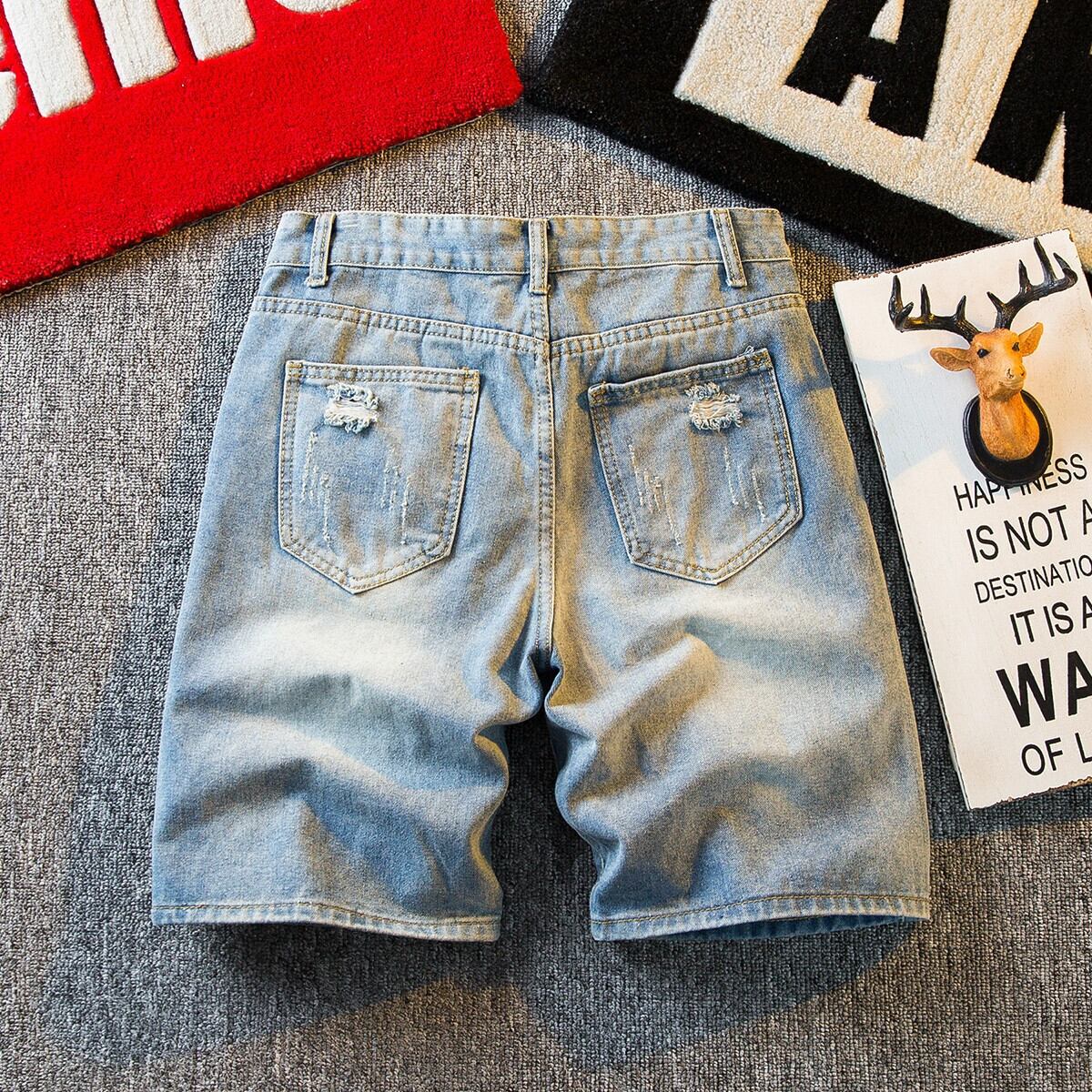 HPCP リップドデニムショートパンツメンズ夏のファッションブランドバージョンスリム 5 点ミッドパンツトレンディカジュアル 5 点パンツ男性 サマー 夏物 ショーツ ブルマー 3381972968669582