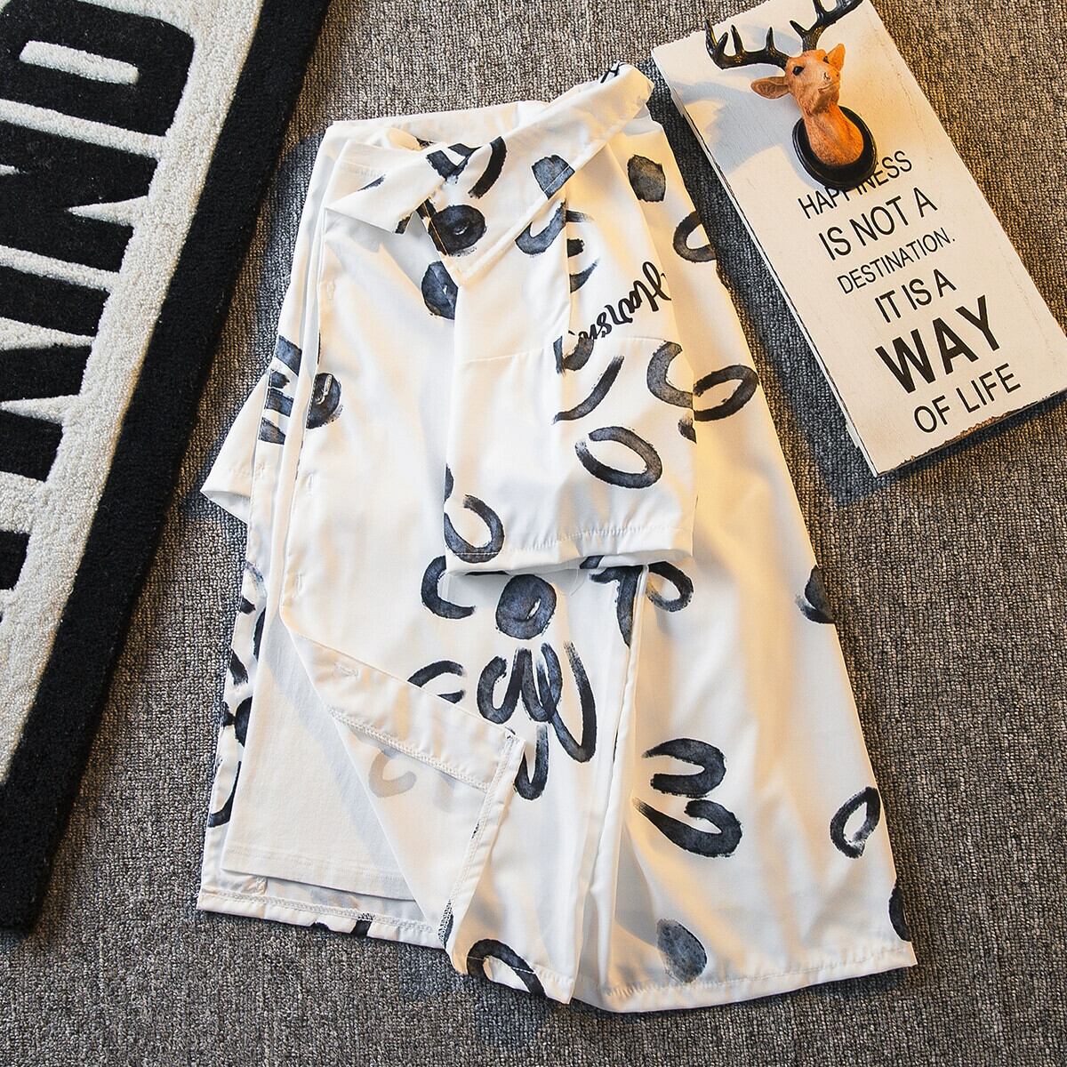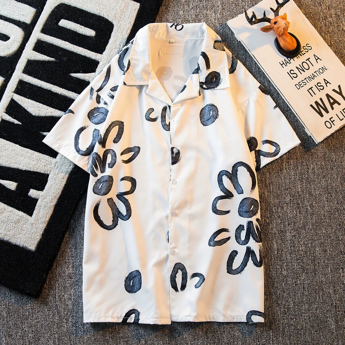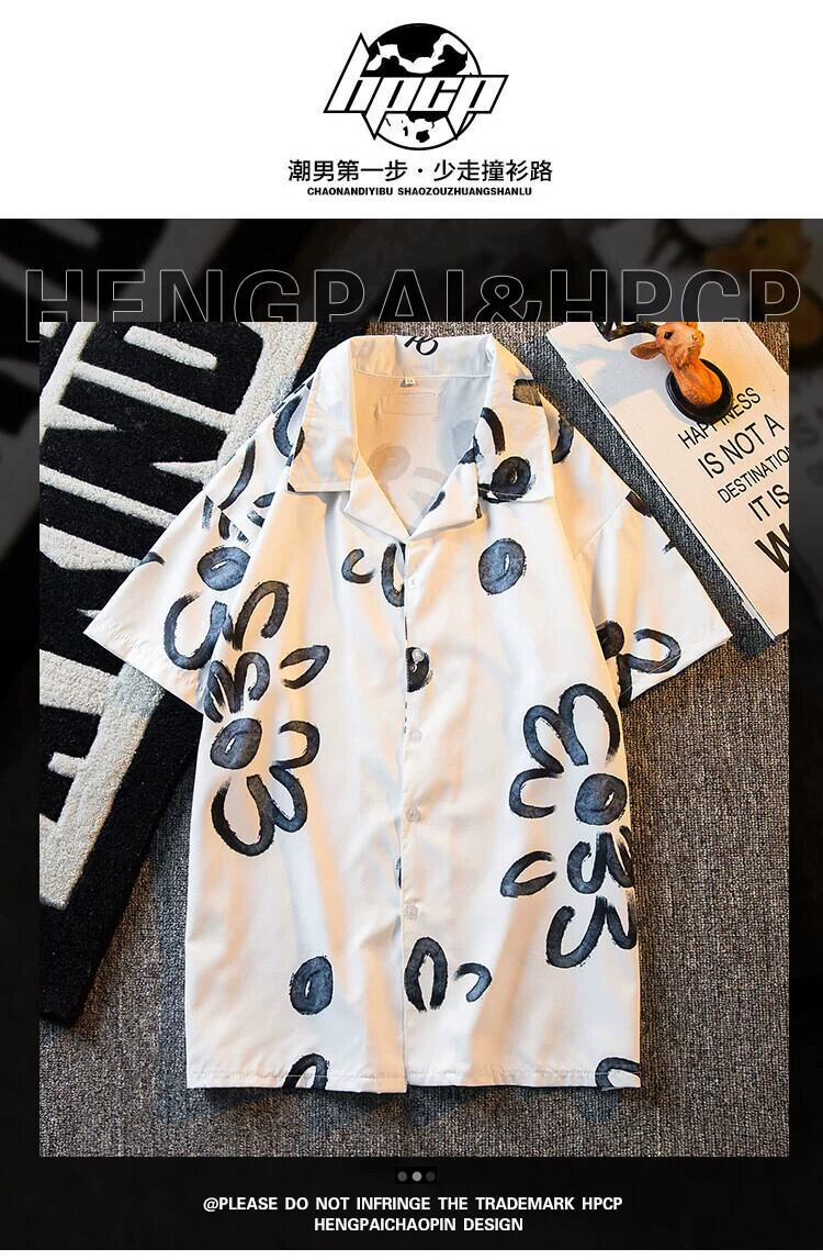 HPCP 夏アメリカンハイストリートグラフィティ半袖シャツメンズデザインセンスキューバンカラーメンズトレンディカジュアルシャツトレンド サマー 夏物 3381919504636568