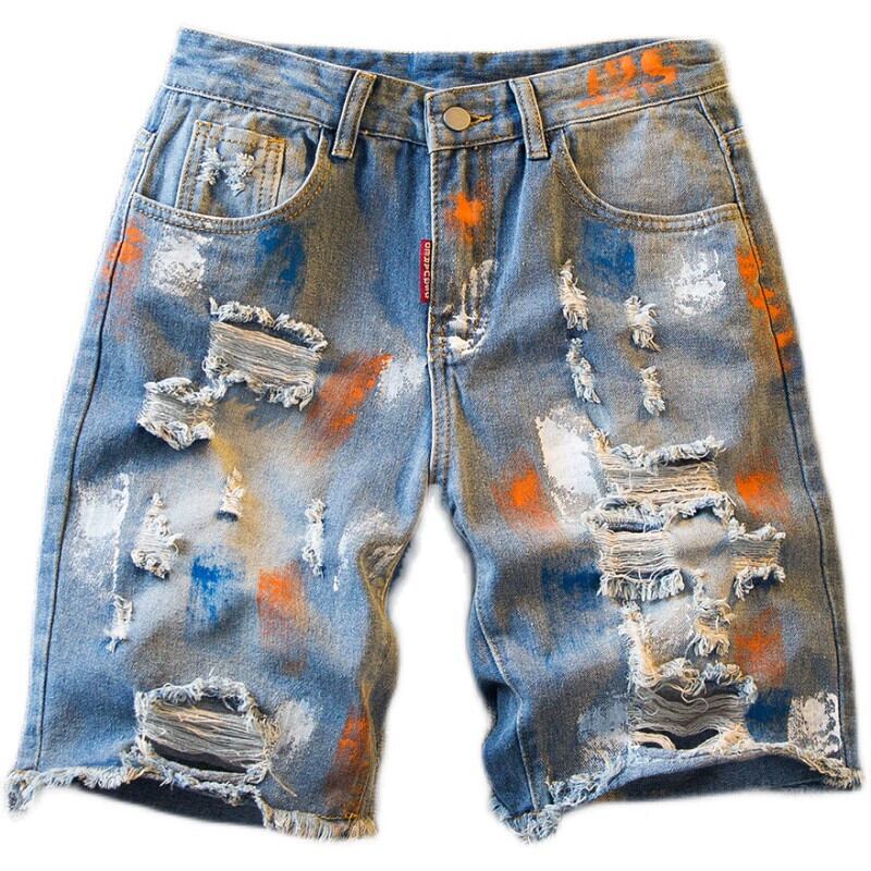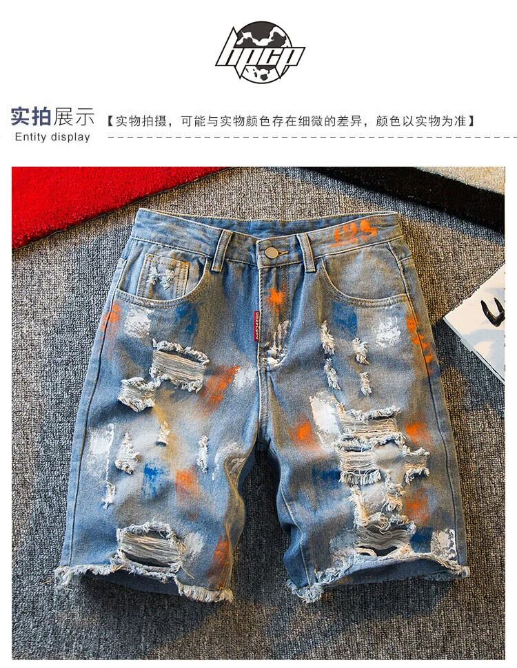 HPCP アメリカン グラフィティ リップド デニム ショートパンツ メンズ 夏 ファッション ブランド トレンド メンズ カジュアル 5点パンツ ルーズパンツ サマー 夏物 ショーツ ブルマー 338192975964885