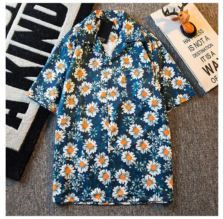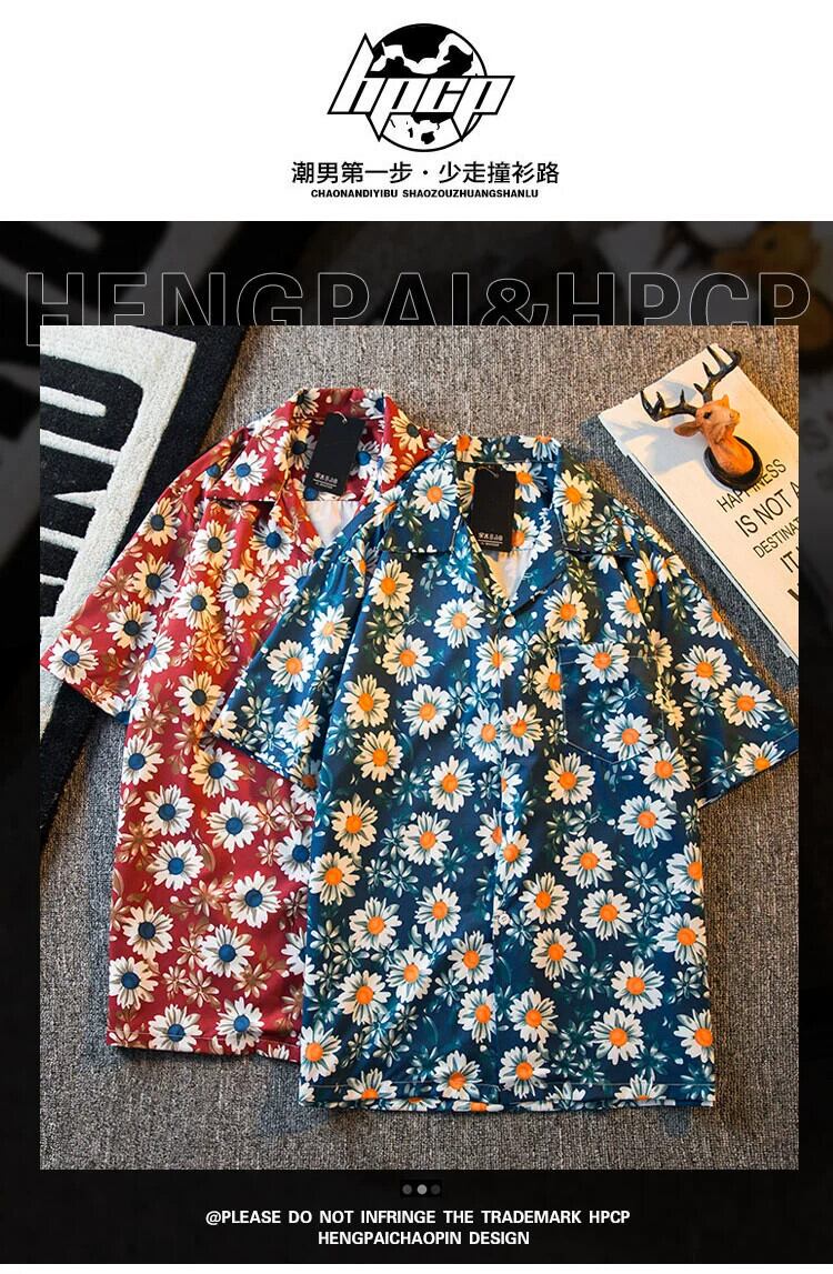 HPCP レトロヴィンテージオールオーバープリントキューバカラーヴィンテージ花柄シャツメンズ夏トレンディなハワイアン半袖シャツ サマー 夏物 ビンテージ 3381922738510349