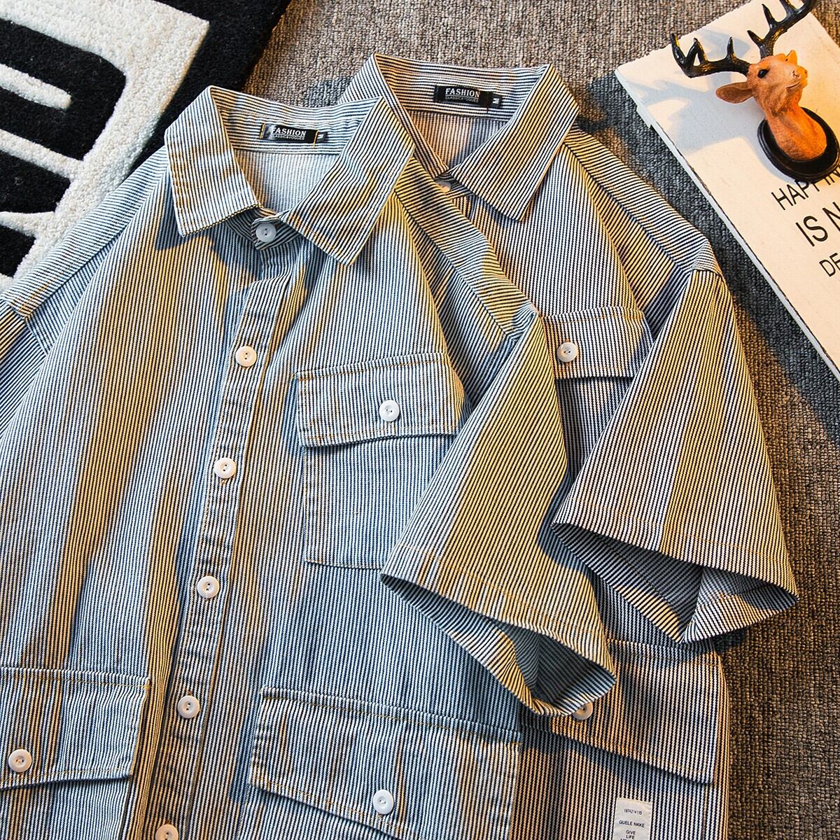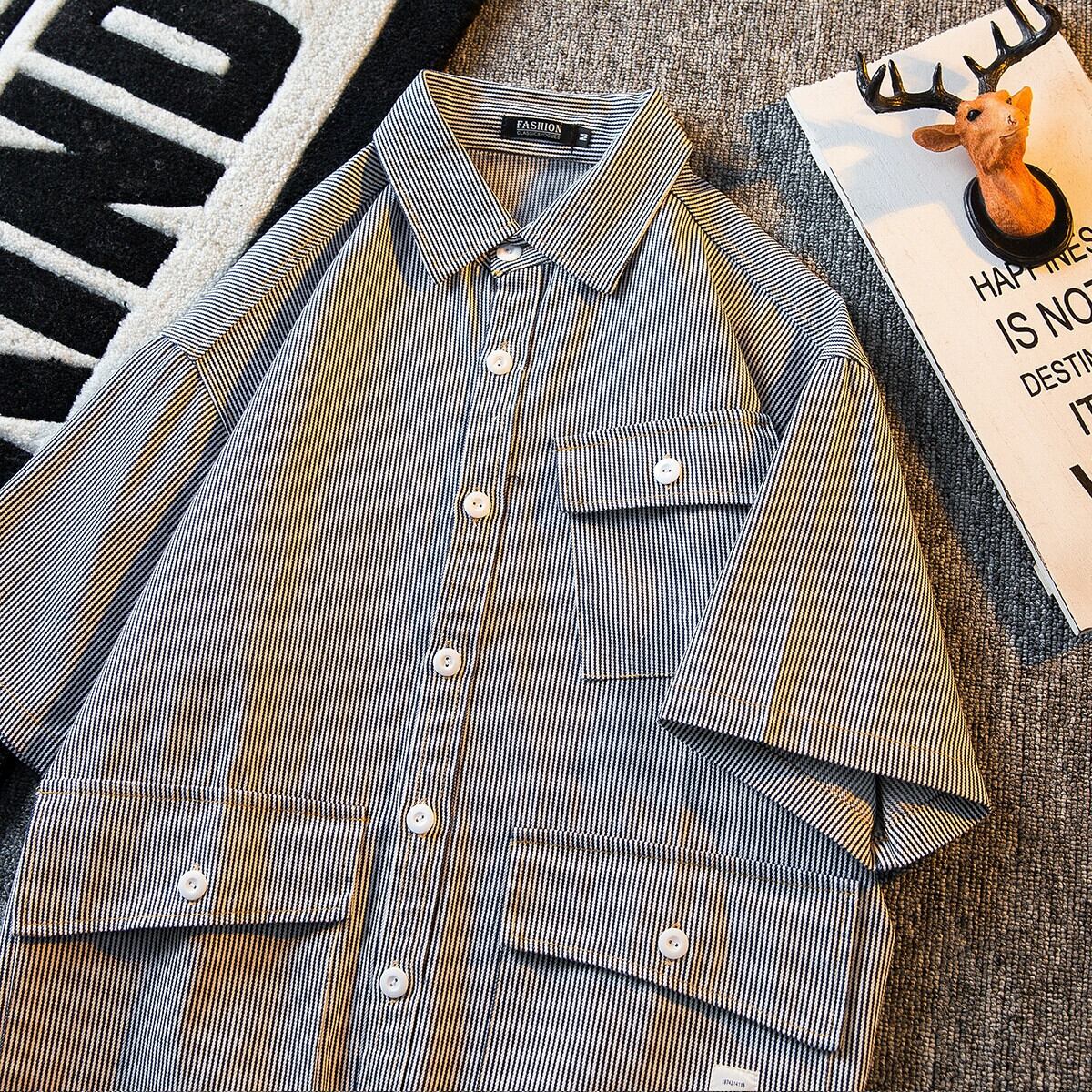 HPCP ヘビーウェイト アミ カーキ ストライプ シャツ メンズ 夏 半袖 ese cityboy ハンサム ワークシャツ メンズ サマー 夏物 3381949961003076
