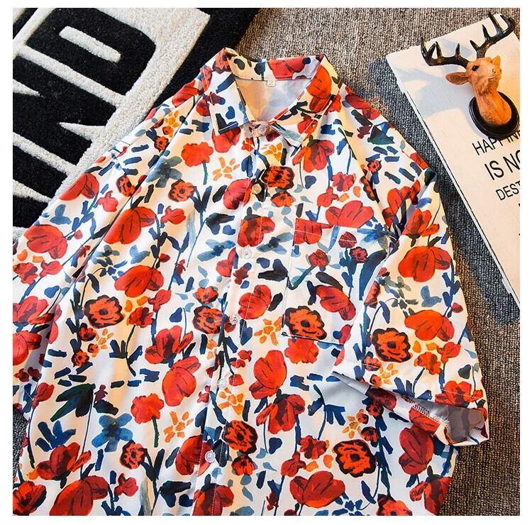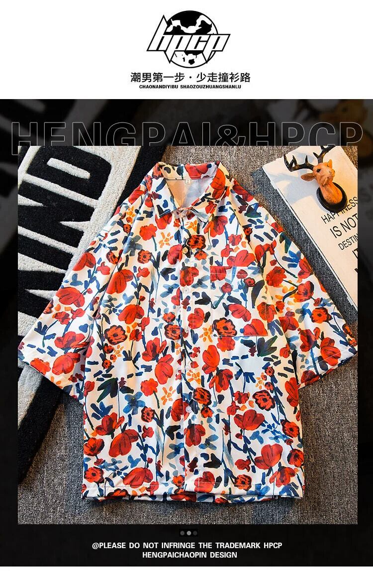HPCP レトロヴィンテージ夏半袖花柄シャツメンズルーズハイエンドカジュアルハワイアンビーチシャツ サマー 夏物 ビンテージ 3381933708802121