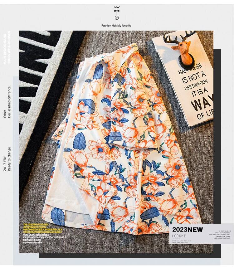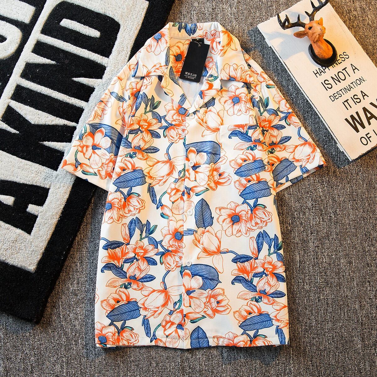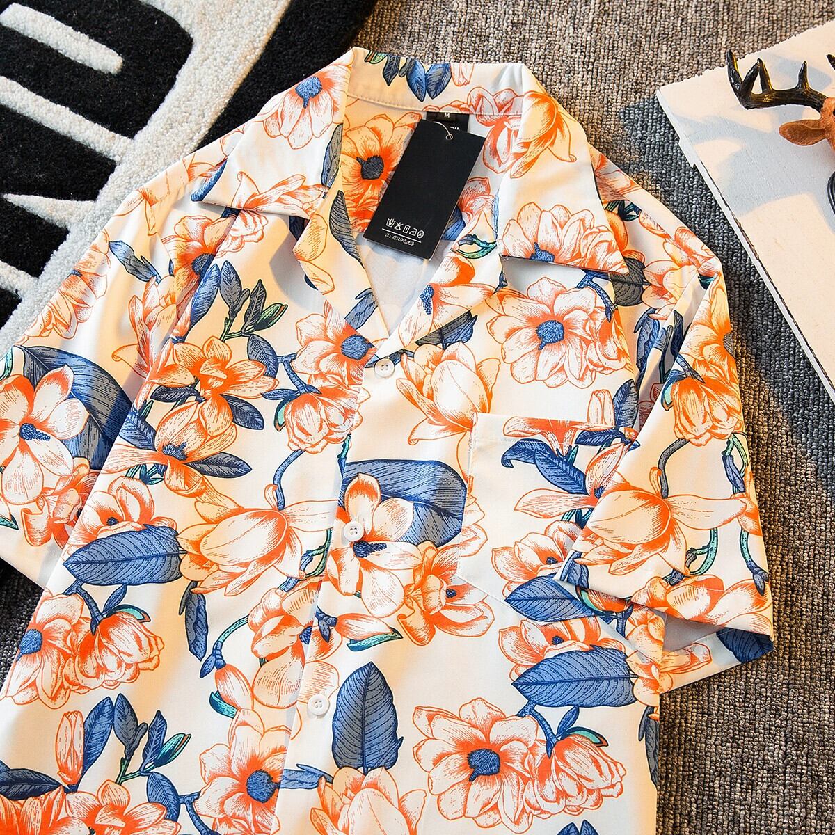 HPCP キューバカラー半袖花柄シャツメンズ夏香港スタイルルーズトレンディなプリントカップルカジュアルアロハシャツ サマー 夏物 3381935444907536