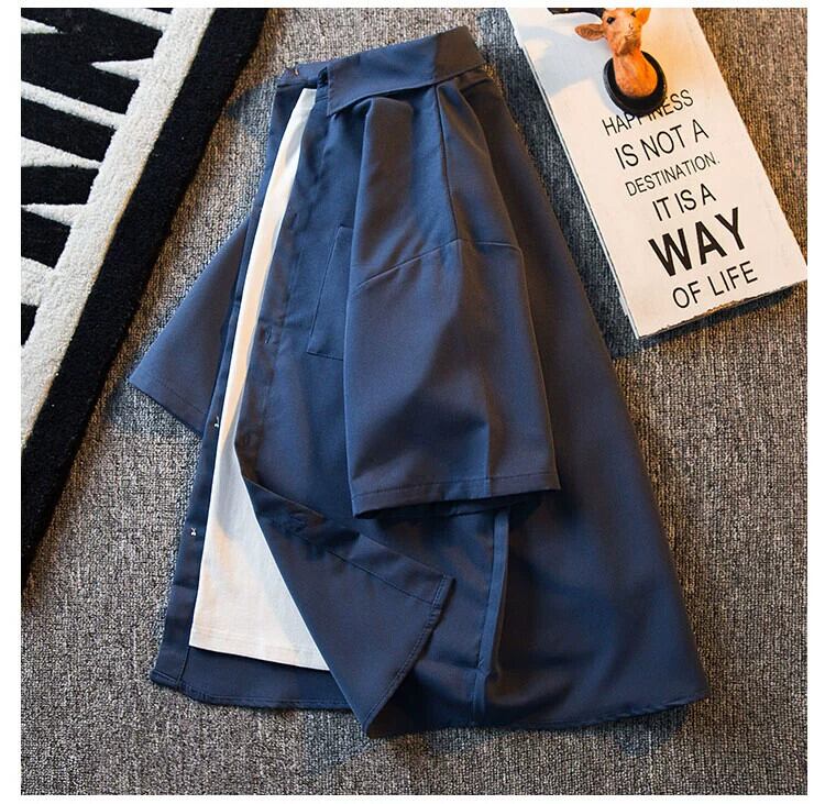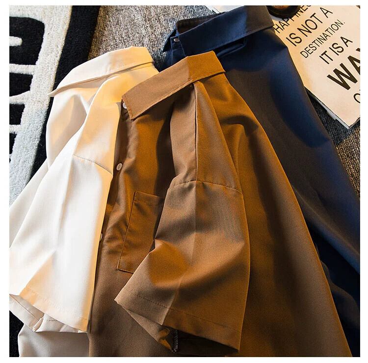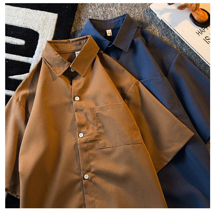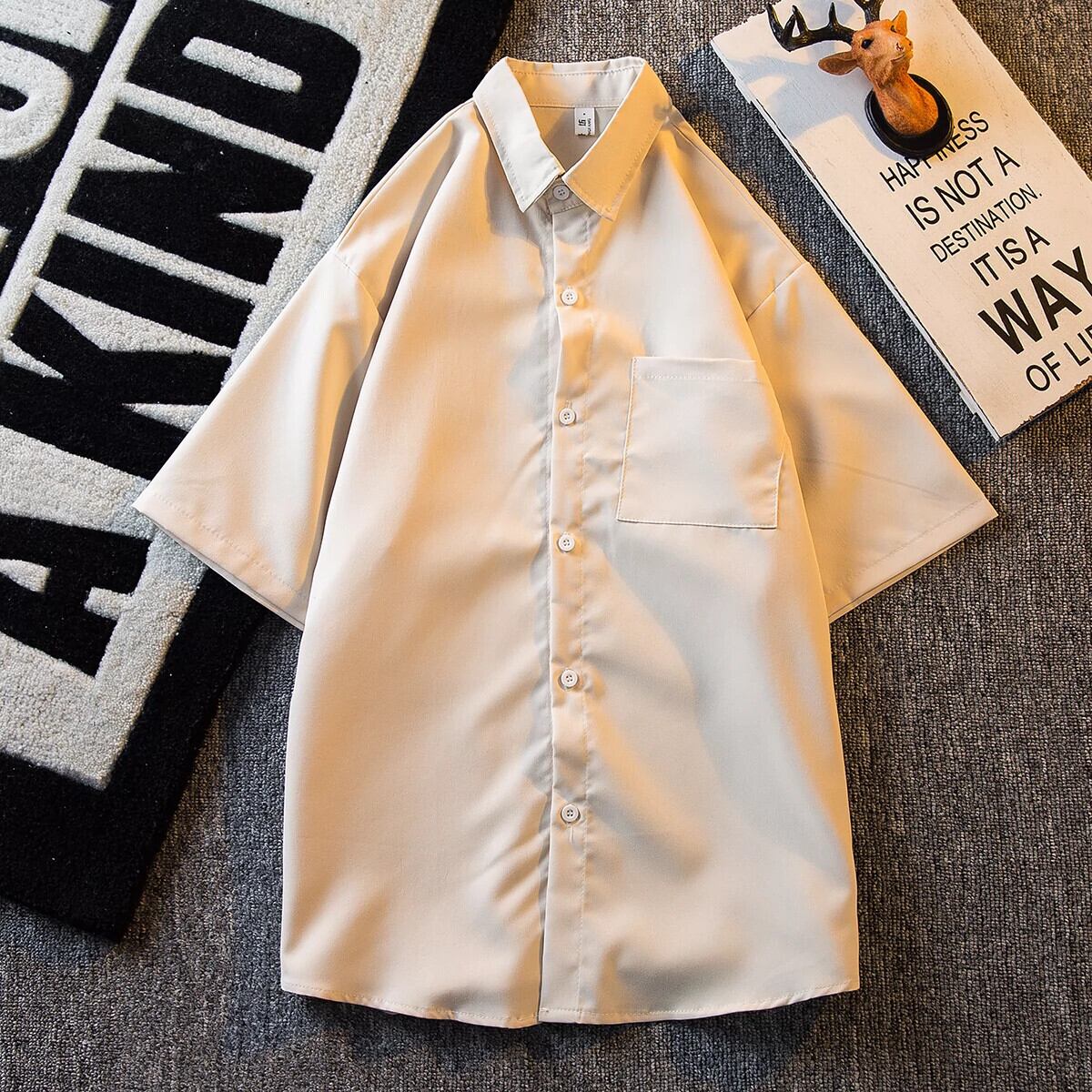 HPCP ブルーシャツメンズ半袖夏薄いファッションブランド ese レトロカジュアルルーズ無地七分袖シャツ サマー 夏物 ソリッドカラー 3381999932539307