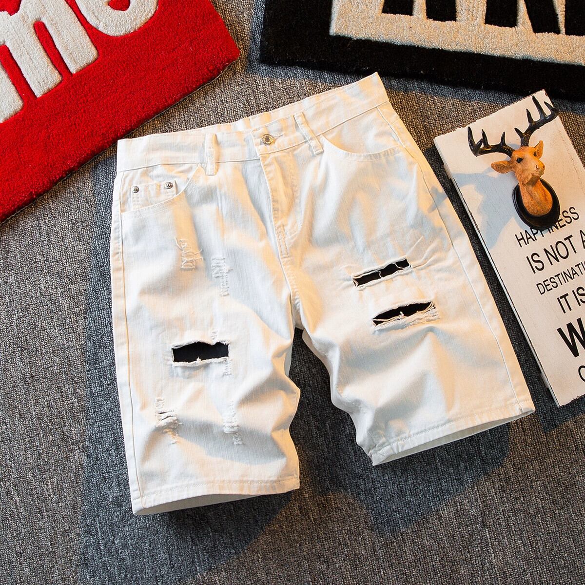 HPCP 夏白リップド 5 分パンツメンズハイストリートファッションブランドトレンドメンズカジュアルミッドパンツ夏デニムショートパンツ ホワイト サマー 夏物 ショーツ ブルマー 3381972244724637