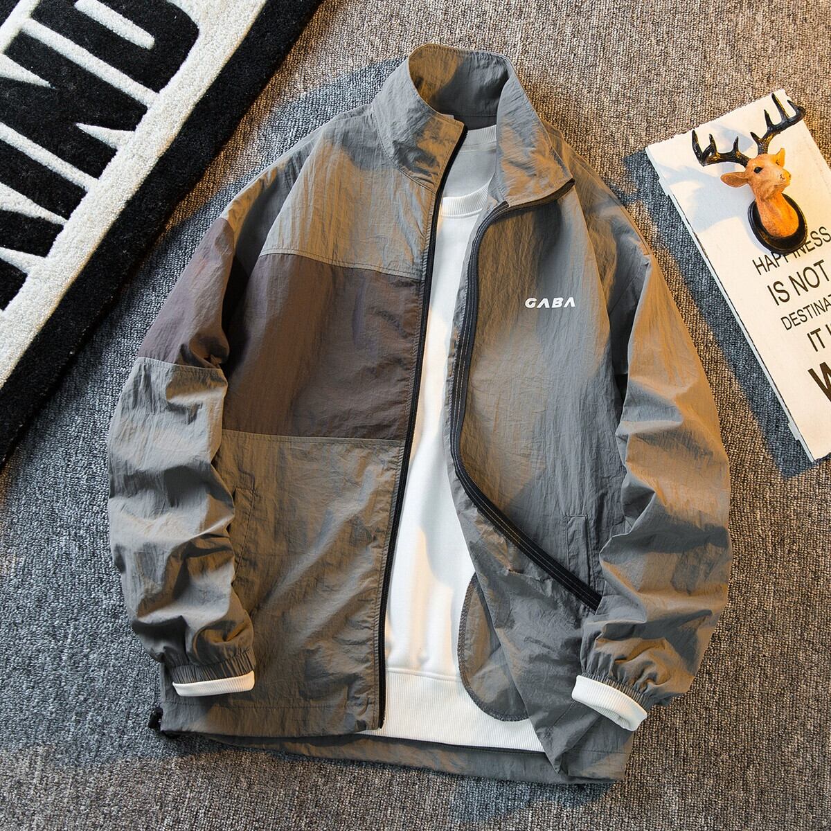 HPCP 夏薄いスプライシング対照的な色スタンドアップカラー日焼け防止服男性夏トレンディなブランド通気性と軽量ジャケット日焼け防止服男性 サマー 夏物 3381949977448696