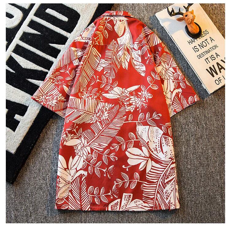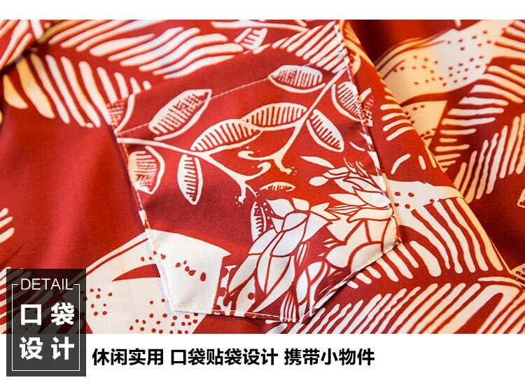 HPCP 赤キューバンカラーハワイアンプリント花柄シャツメンズ夏薄いハイエンドハンサムシャツジャケット男性 レッド サマー 夏物 3381912619402562