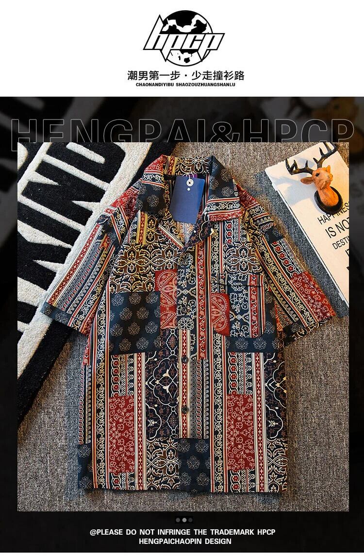 HPCP レトロヴィンテージ花柄シャツメンズ半袖夏 ese デザインニッチメンズキューバカラーシャツ サマー 夏物 ビンテージ 3381973270266723