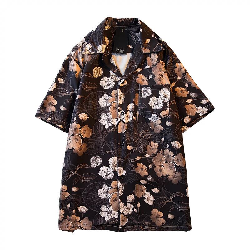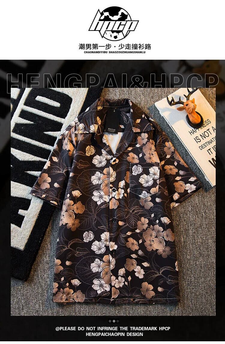 HPCP レトロ香港スタイルハワイアン半袖花柄シャツメンズ夏ハイエンドハンサムメンズキューバ襟薄いシャツ サマー 夏物 3381967314059292