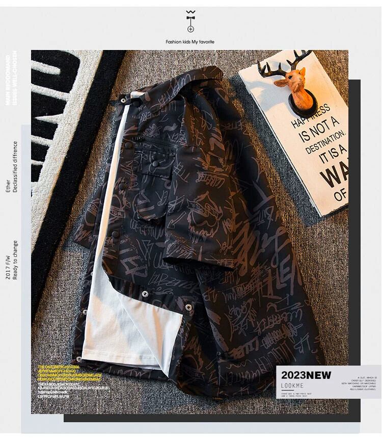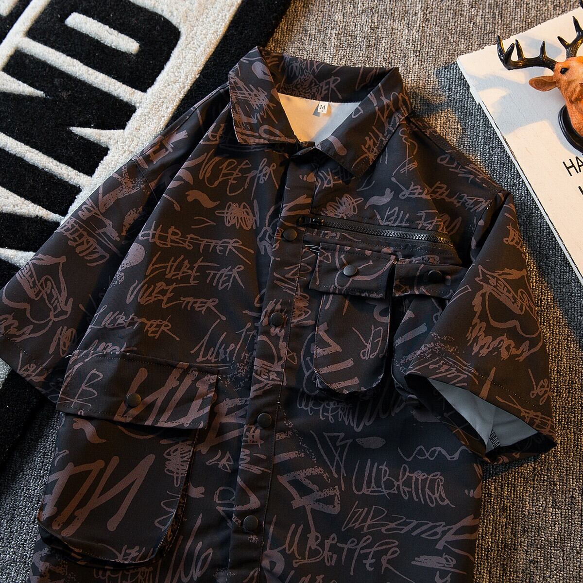 HPCP 機能的スタイルワークシャツメンズ半袖夏 ese スタイルマルチポケットデザインニッチルーズカジュアルシャツ サマー 夏物 ポケット多め 3381964094138799