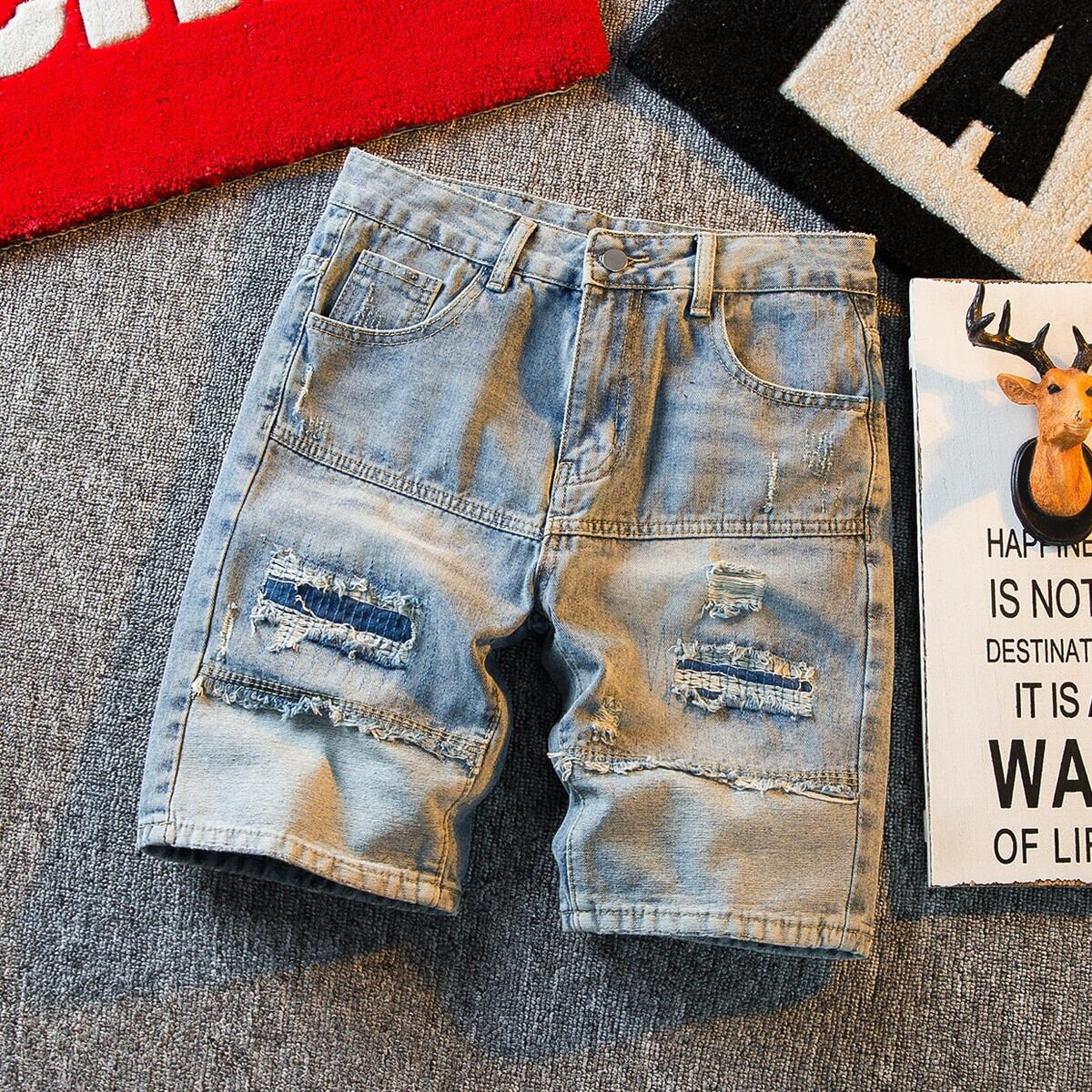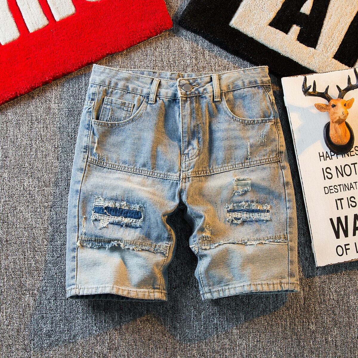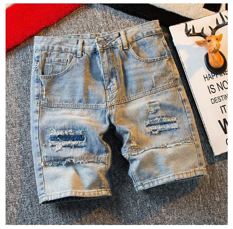 HPCP 夏薄いメンズデニムショートパンツトレンディなブランドバージョンスリムカジュアル 5 分パンツトレンディなリップドミッドパンツメンズ サマー 夏物 ショーツ ブルマー 3381997694098365