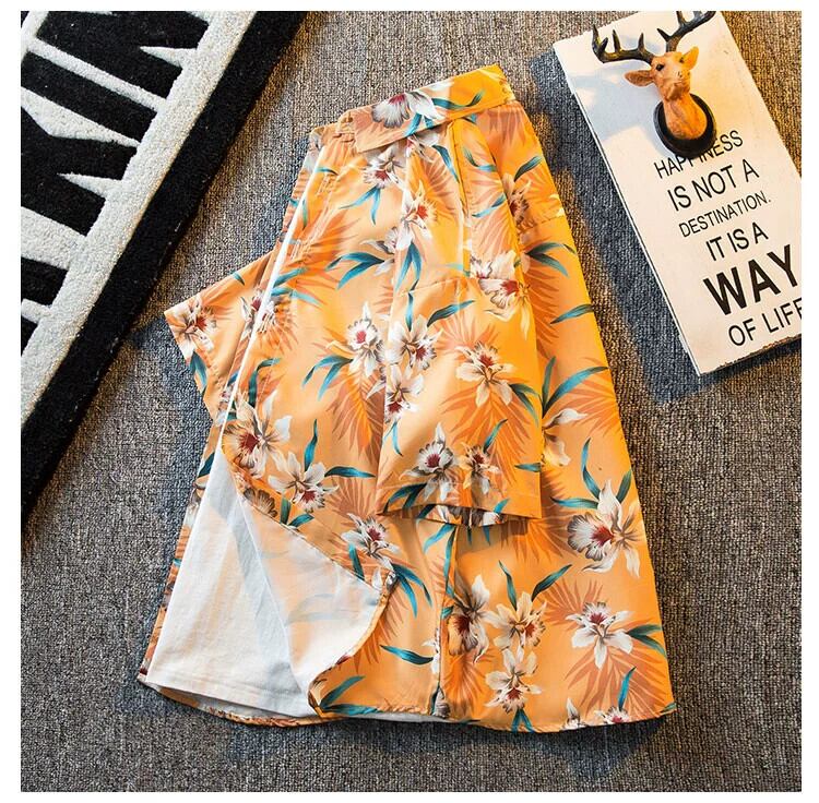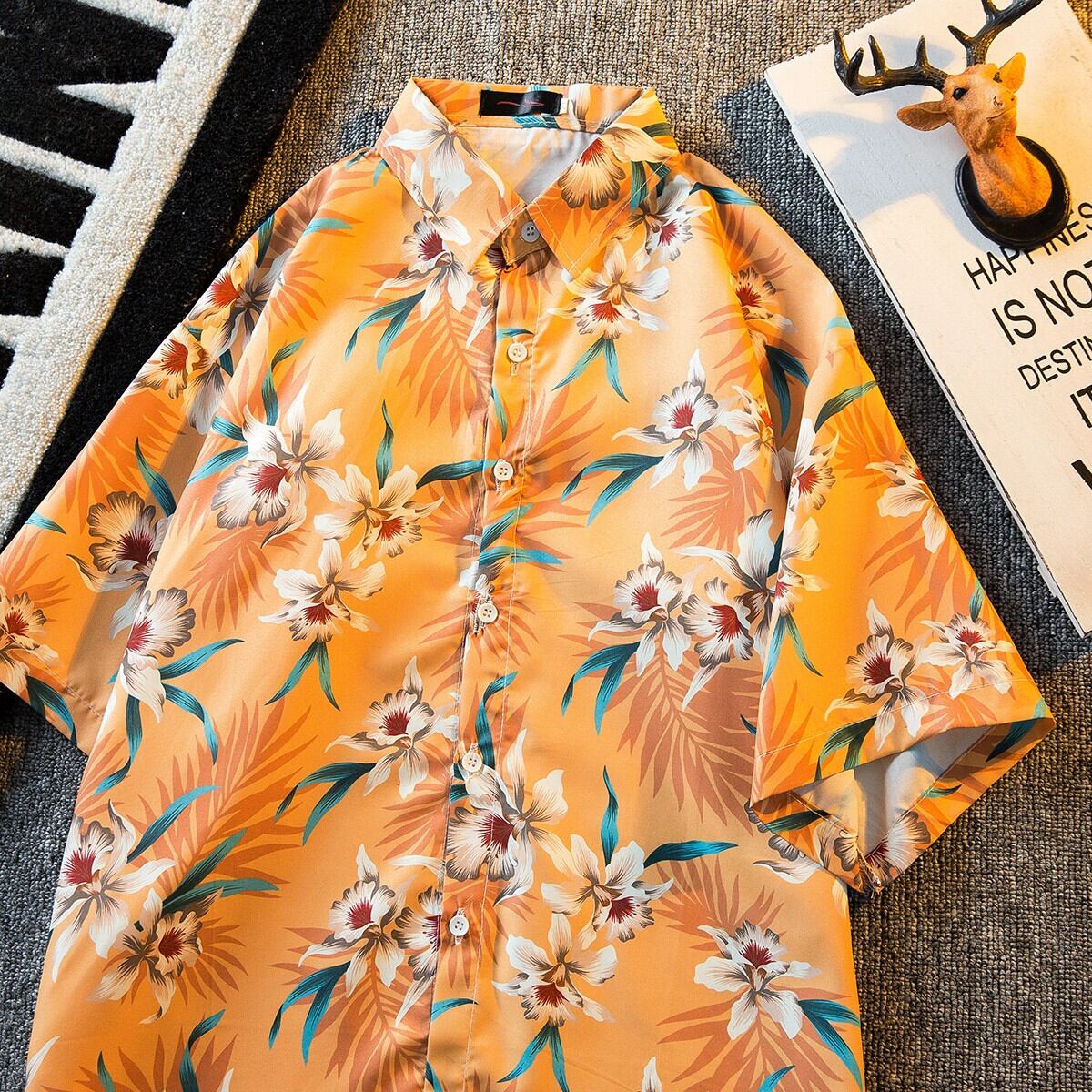 HPCP 夏の新半袖アイスシルクフラワーシャツメンズインシーサイドレトロハイエンドセンスハンサムルーズシャツトレンド サマー 夏物 フラワーデザイン 338194608808951