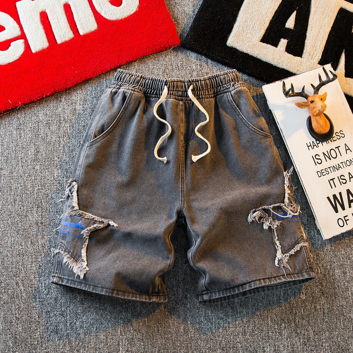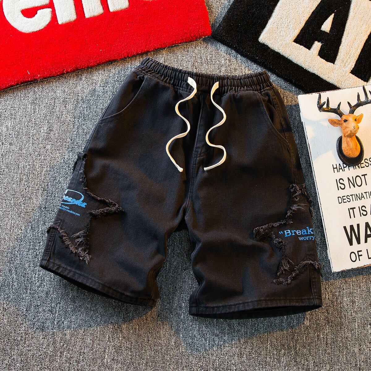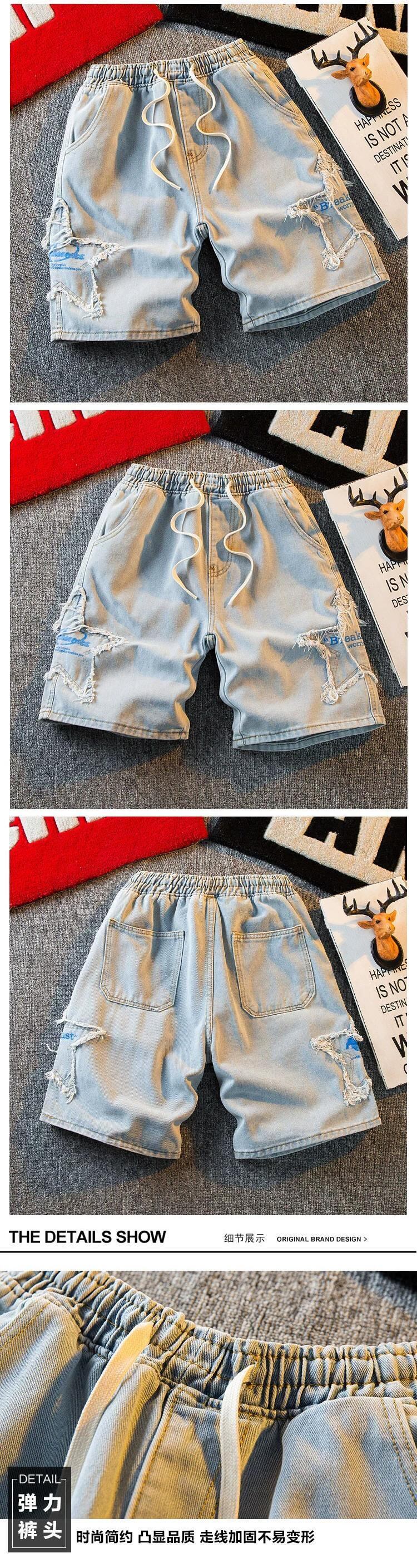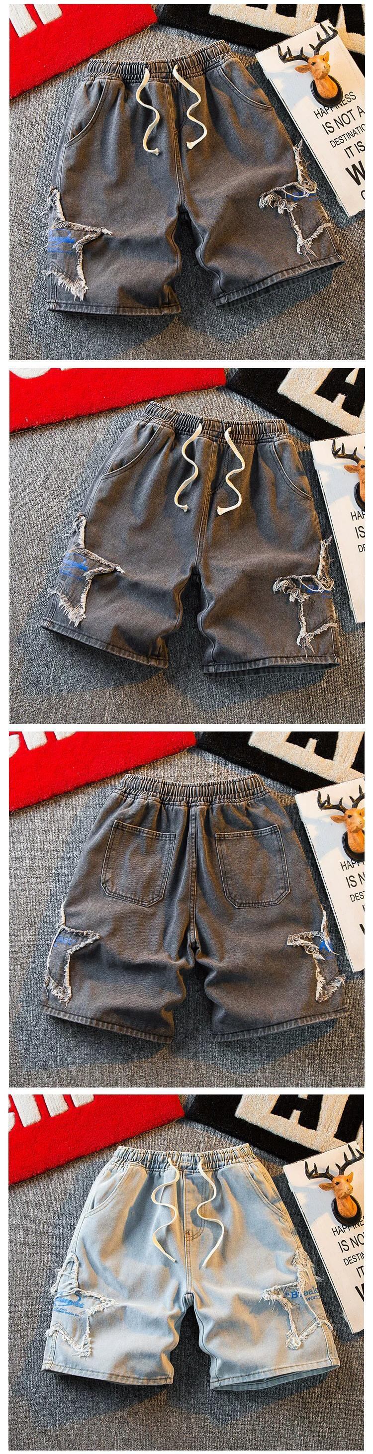 HPCP 起毛五芒星デニムショートパンツメンズ夏ルーズでハンサムなストリートインファッションブランドカジュアル 5 点パンツ男性 サマー 夏物 ショーツ ブルマー 3381978805781097