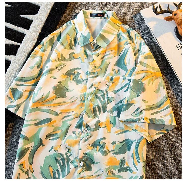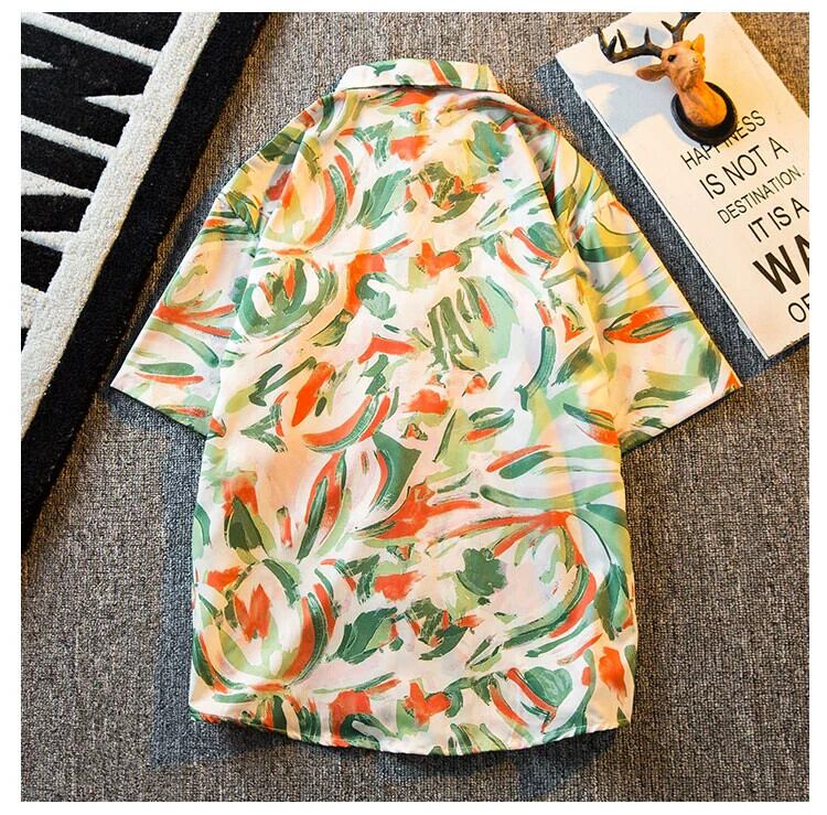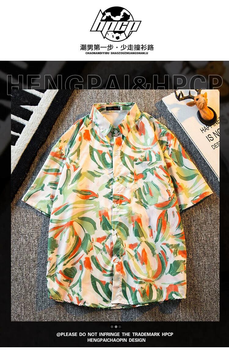 HPCP ese レトロ油絵半袖花柄シャツメンズ夏 ins 香港スタイルトレンディなハワイアン半袖花柄シャツ サマー 夏物 3381935944853162