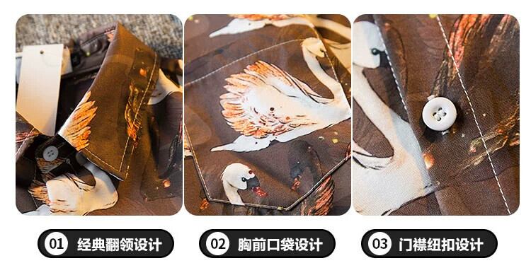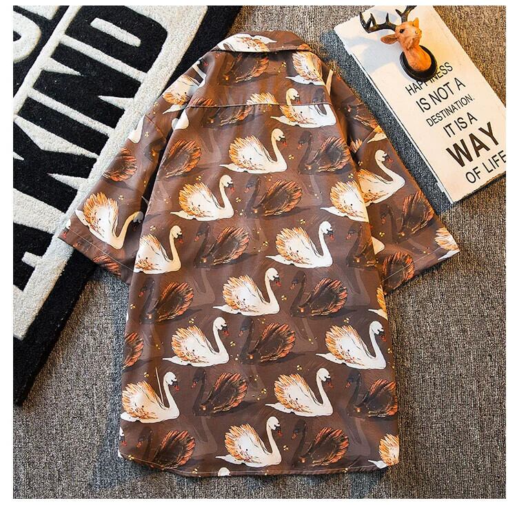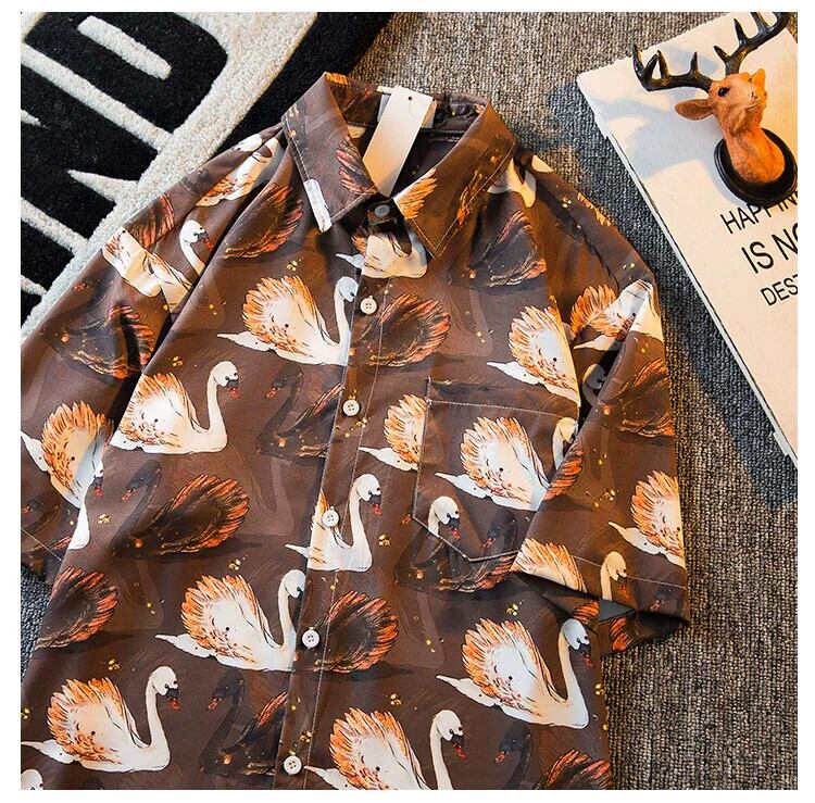 HPCP ヴィンテージ油絵オールオーバー白鳥の花シャツメンズ夏ハイエンド ese トレンディなカジュアルカップルシャツ サマー 夏物 フラワーデザイン ビンテージ 3381971813479238