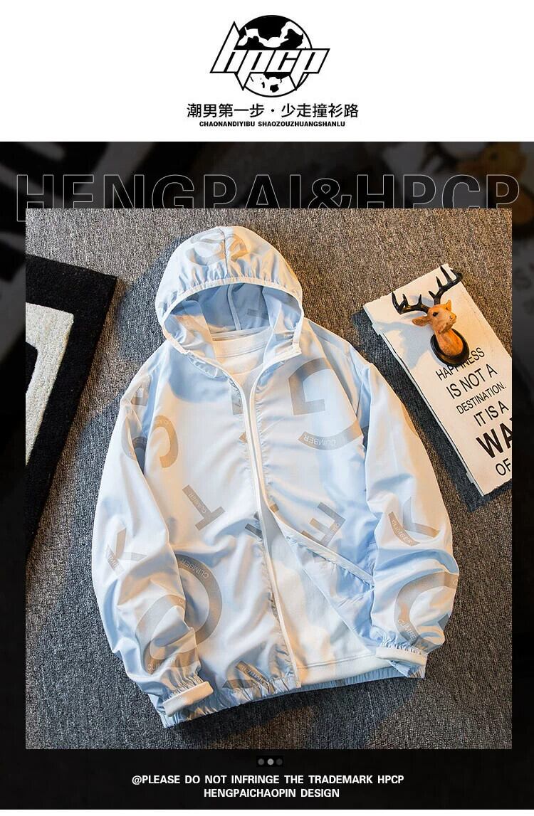 HPCP 夏 2023 メンズ日焼け止めジャケット男性のトレンディなアウトドア軽量フード付き通気性日焼け止め薄型 サマー 夏物 3381989659395369