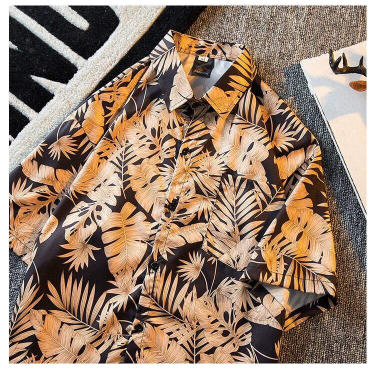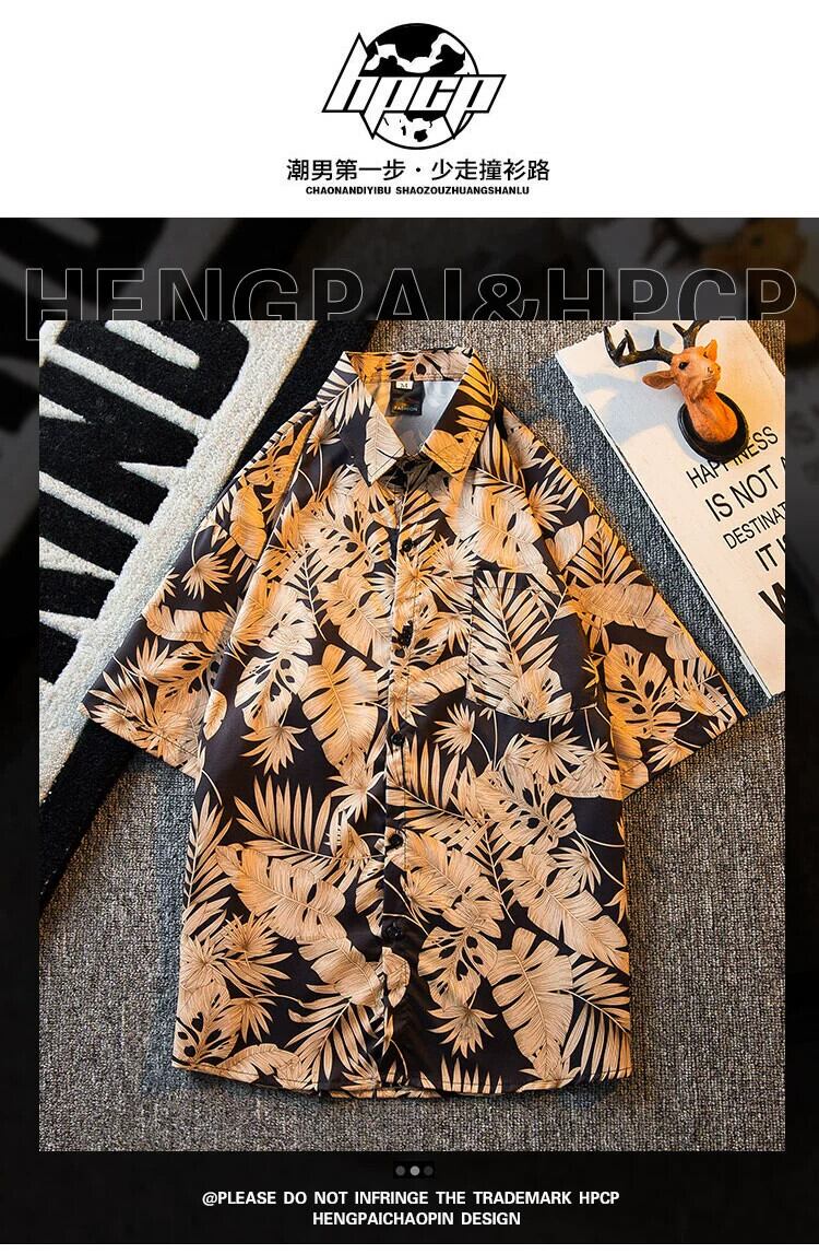 HPCP ハワイアンフラワーシャツ半袖メンズ夏ハイエンド香港スタイルルーズシーサイドカジュアルタイヴィンテージシャツ サマー 夏物 フラワーデザイン ビンテージ 3381958989058007