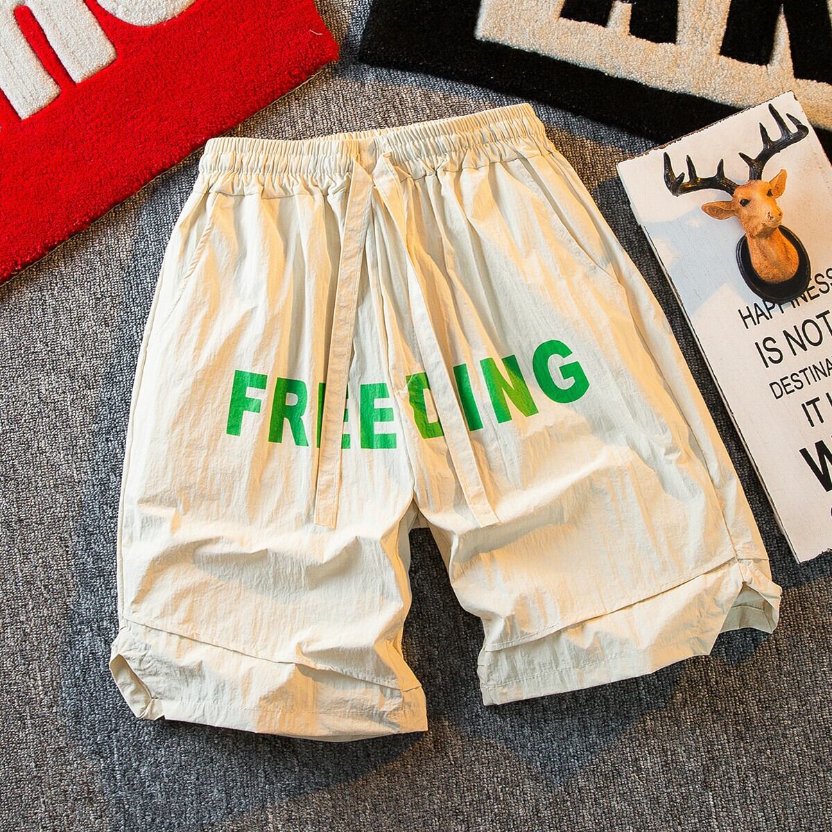 HPCP アメリカ ファッション ブランド カジュアル ショートパンツ メンズ ゆったり 夏 トレンド レター ユース スポーツ 5点式 オーバーオール パンツ サマー 夏物 ショーツ ブルマー 3381973117817828
