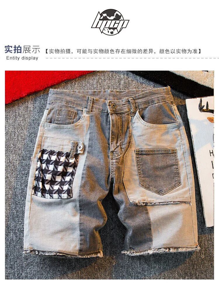 HPCP 夏パッチワーク デニム ショートパンツ メンズ トレンド ブランド ハンサム 5 点ミディアム パンツ メンズ カジュアル 5 点パンツ メンズ サマー 夏物 ショーツ ブルマー 3381945948920480